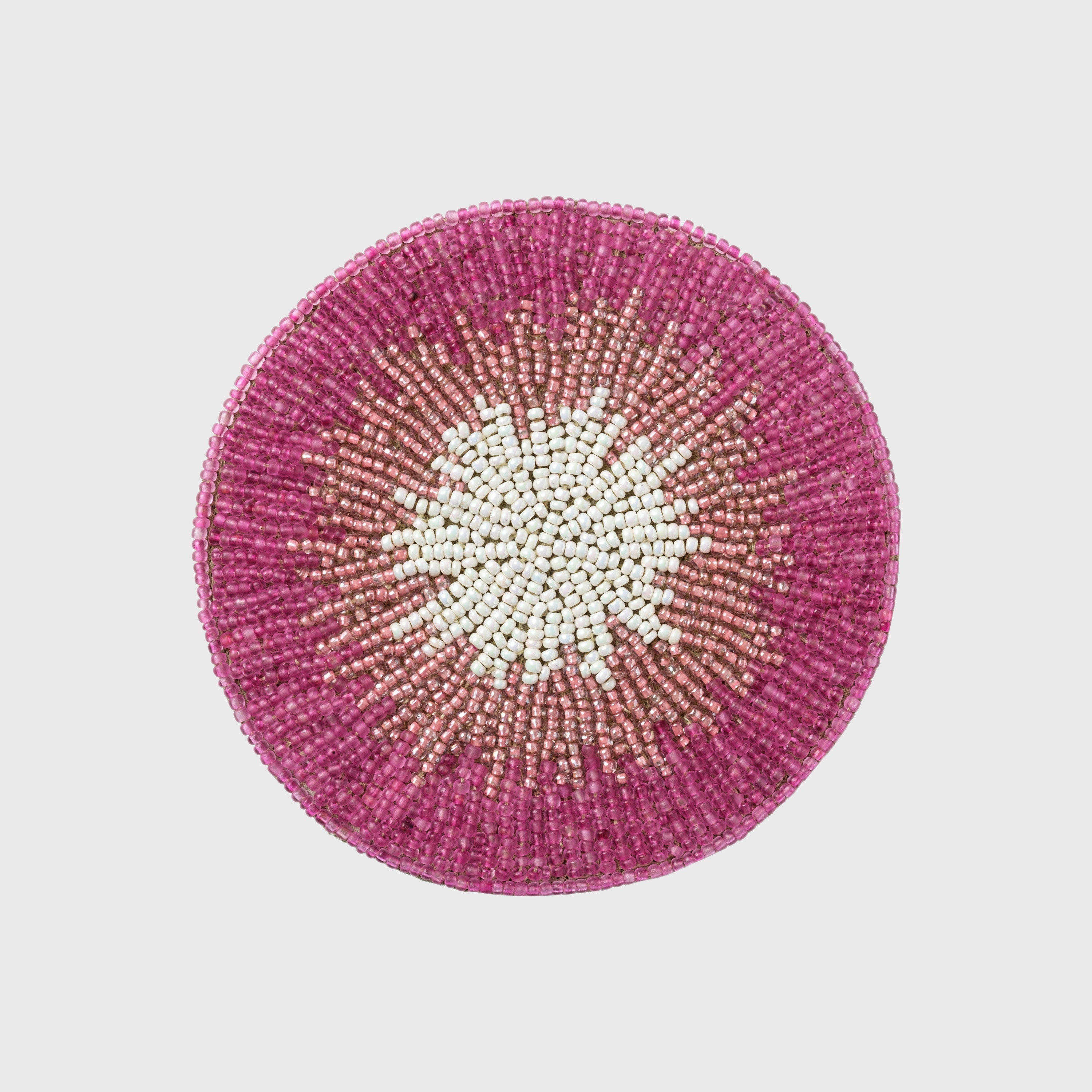 Hand-beaded with glass beads in soft pink ombré tones