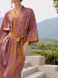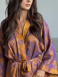 Wrap yourself in the luxurious elegance of our Oriental Jacquard Kimono Robe, crafted from high-quality jacquard fabric with a stunning glossy purple floral design. This robe is designed to care for your skin, providing comfort and beauty for every moment of your day. Perfect for both morning and night, it effortlessly combines sophistication with practicality, making it a must-have in your wardrobe.