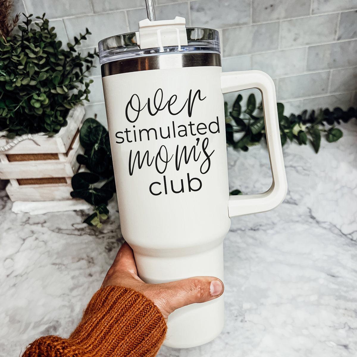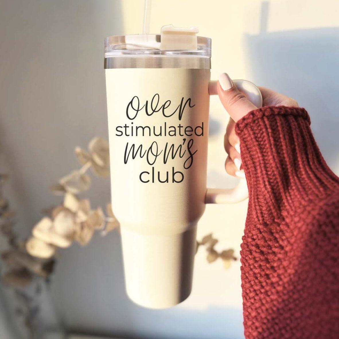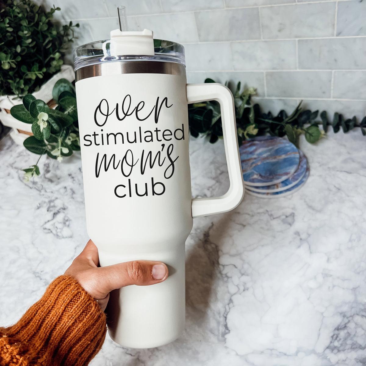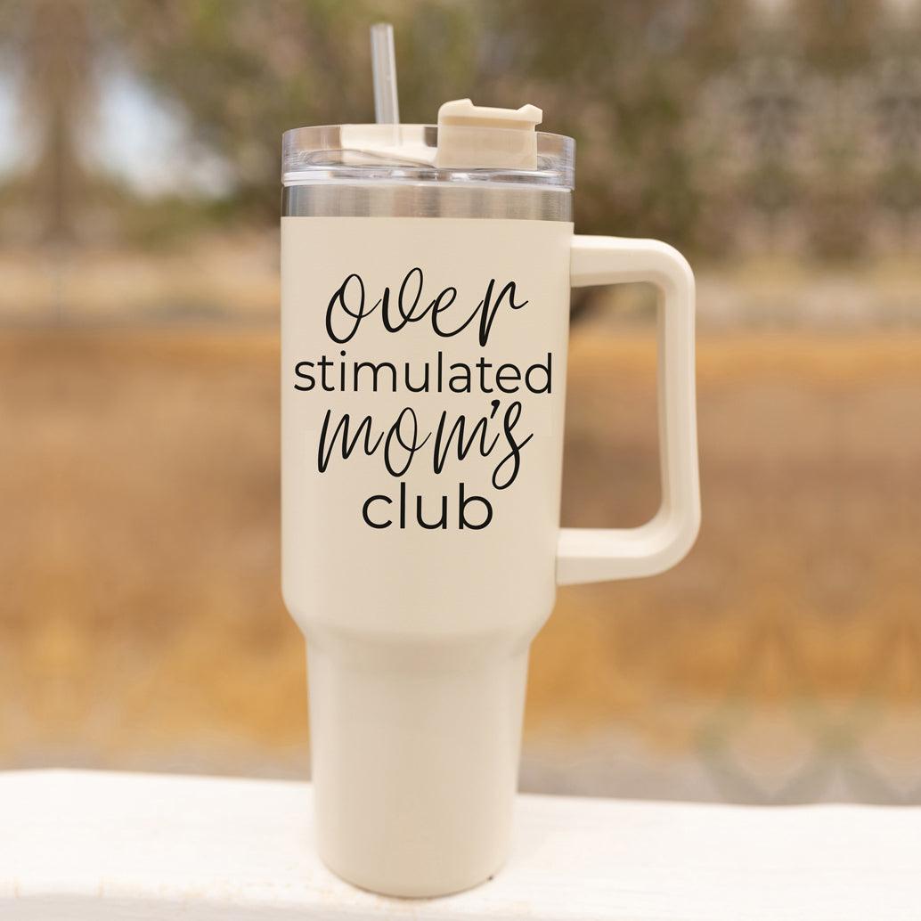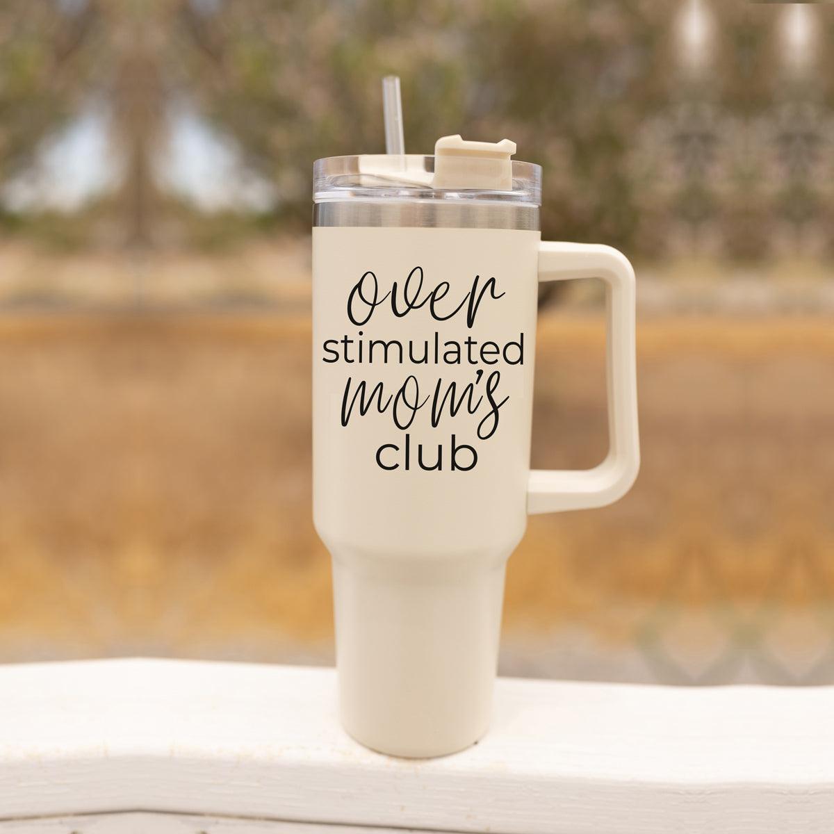 Over Stimulated Moms Club Insulated Mug with handle, lid and straw