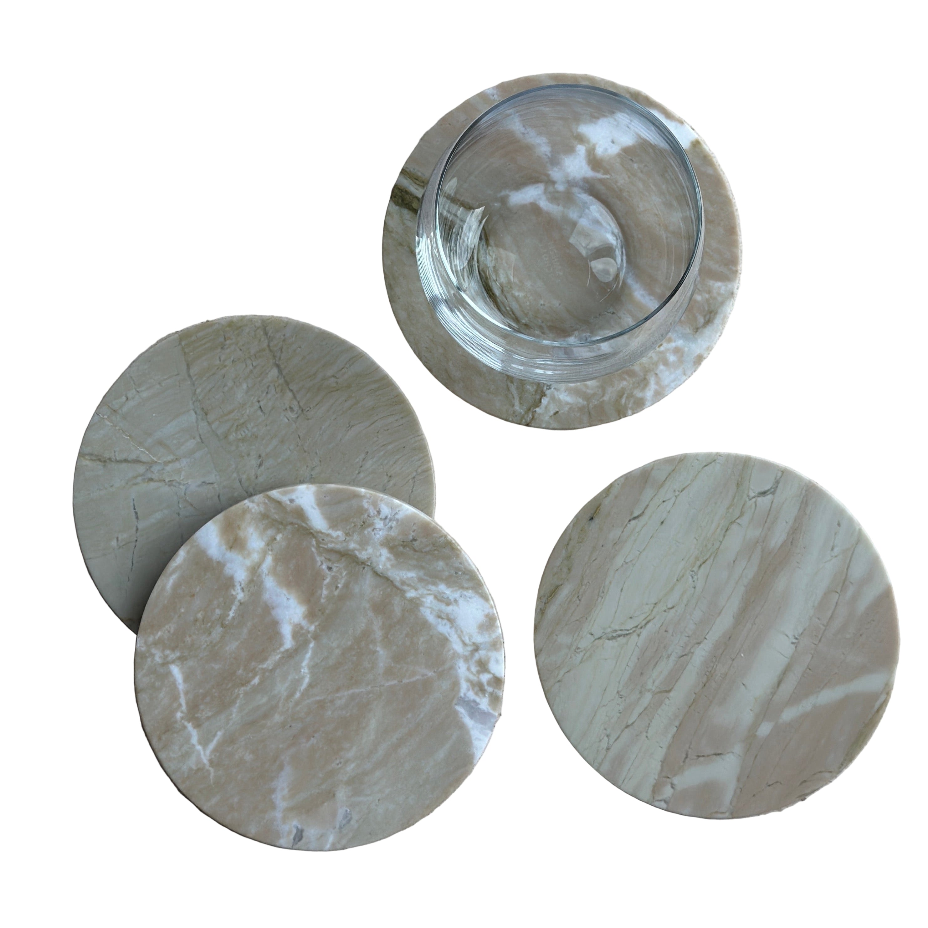 Generous in scale—the Oversized Coasters are a set of four stone rounds designed for the table.