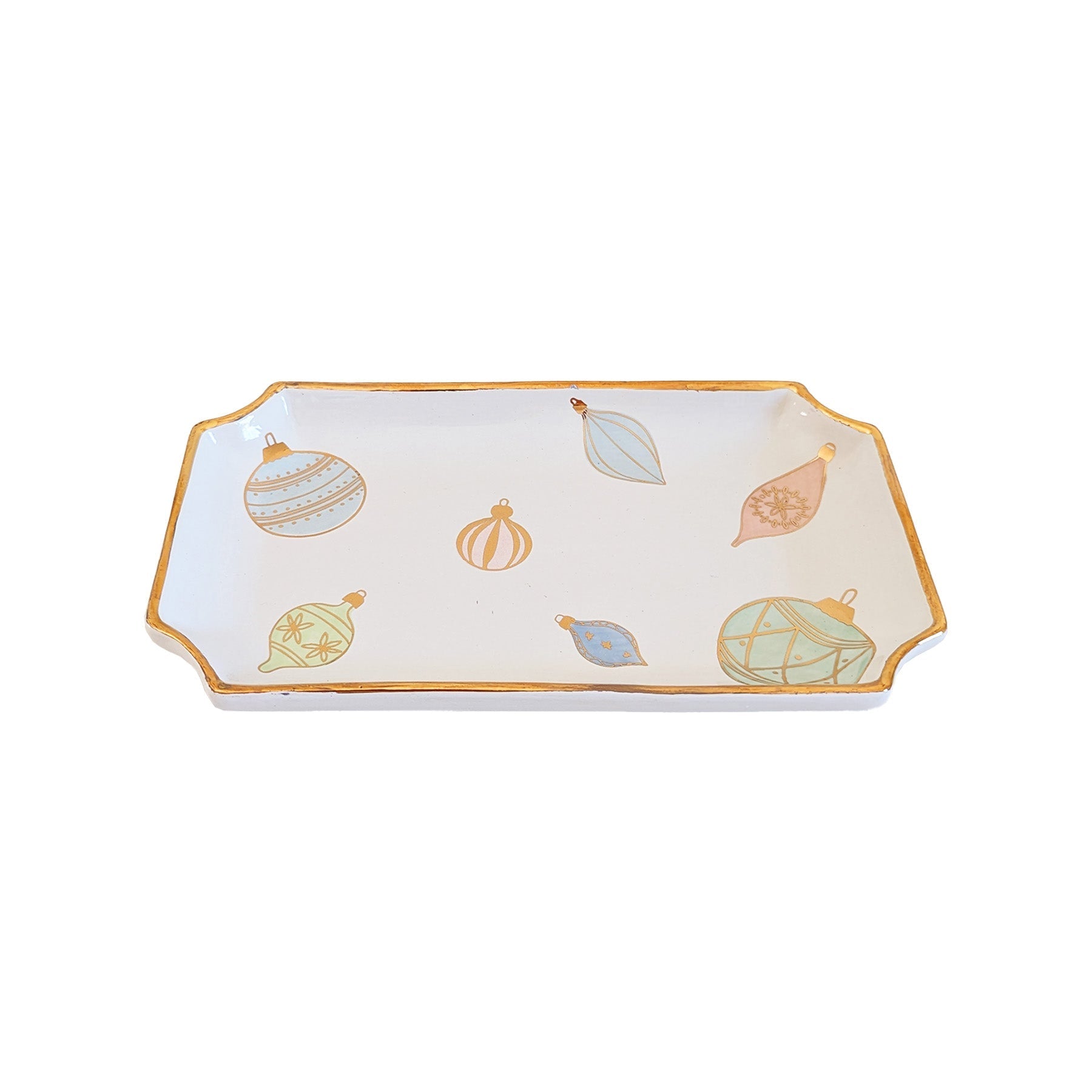 Our classic trays are hand-painted by a Lo Home artist before being fired for a beautiful and durable finish which is food and water safe. This style features a hand-painted 22K gold trim. Each tray is finished with hand-applied 22K gold and artwork.