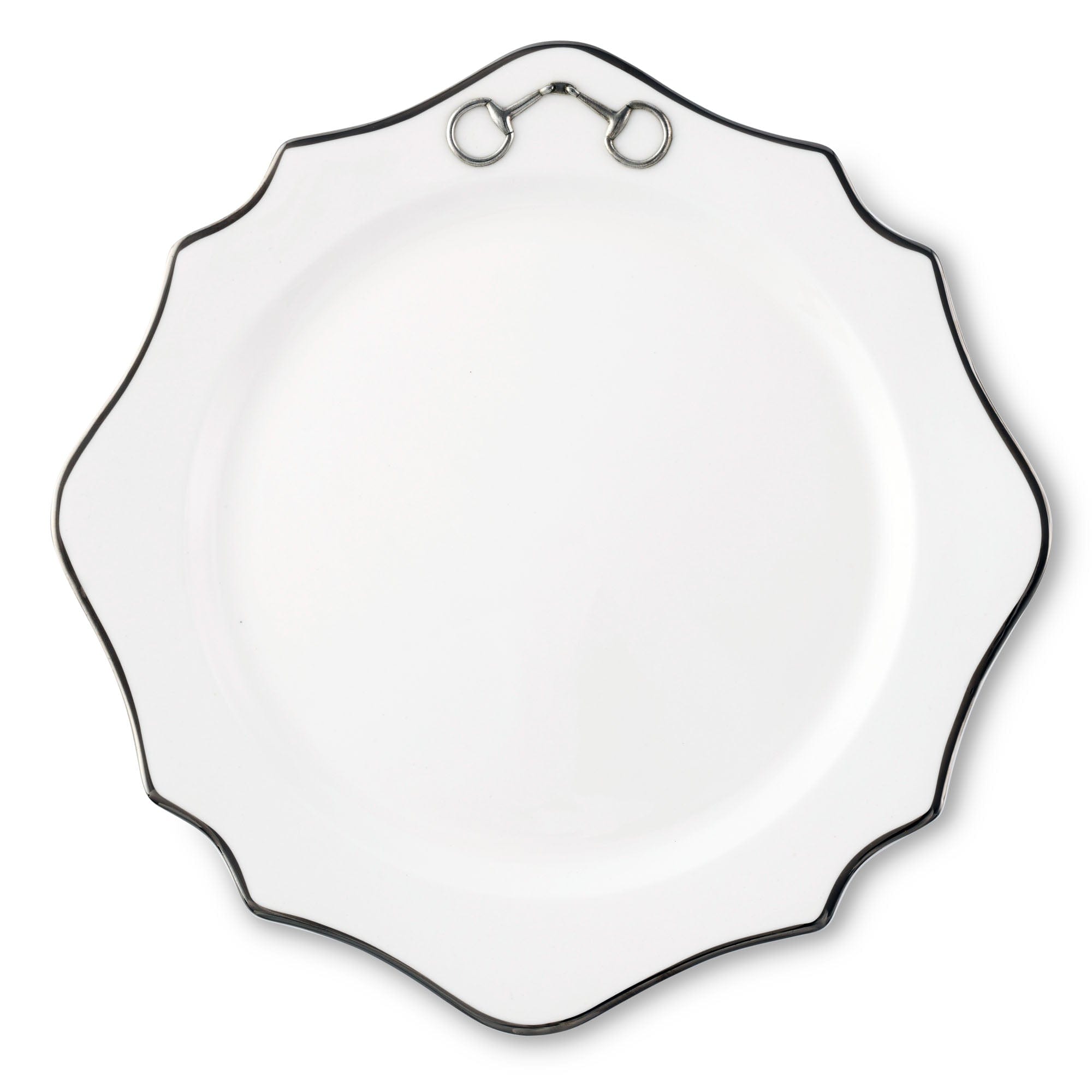 Elevate your dining experience with this exquisite charger plate, beautifully crafted from bone china and pewter. This generous 13-inch plate is ideal for protecting your tabletop from spills while adding to its charm. The scalloped edges and platinum rim further highlight the elegance of the equestrian design. Match it with other pieces from the same collection or let it be the star table accessory on its own. Perfect gift for housewarming or holiday celebrations.