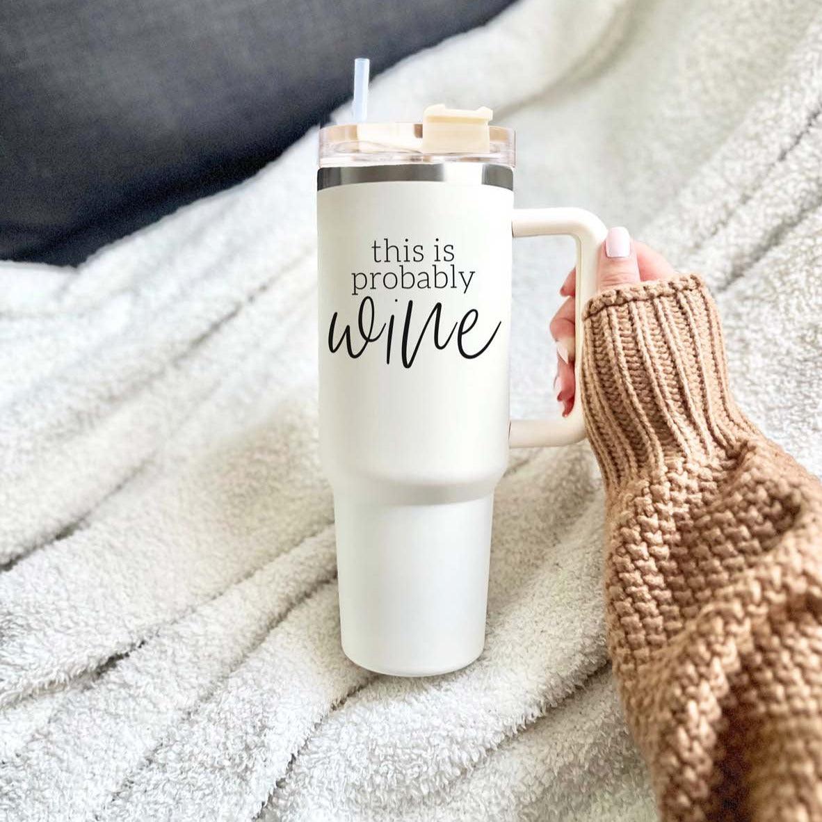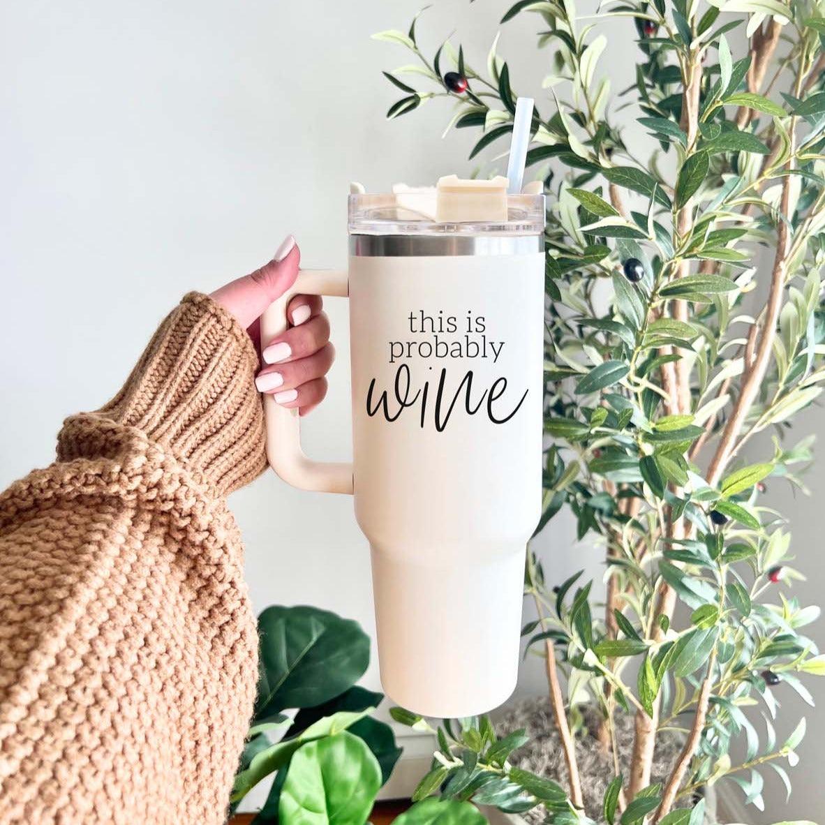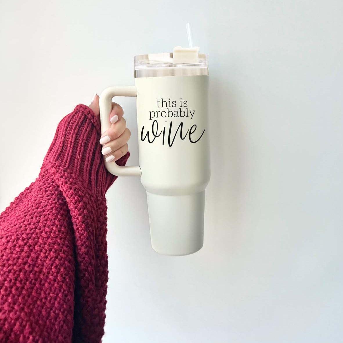 Indulge in the playful charm of the "Probably Wine" 40oz tumbler. Because life's too short not to sip from a cup that makes you smile and might just make others wonder what's in there!