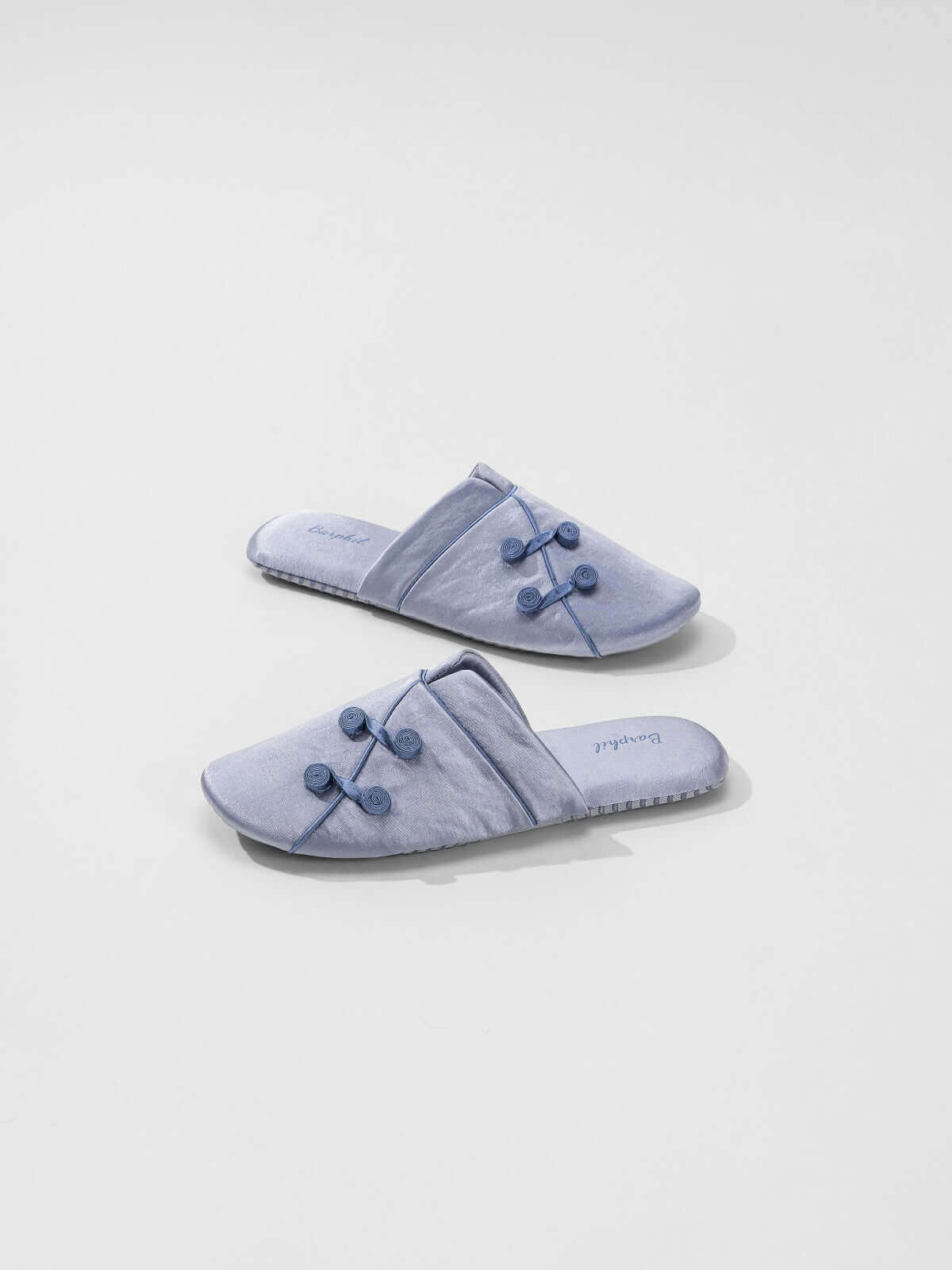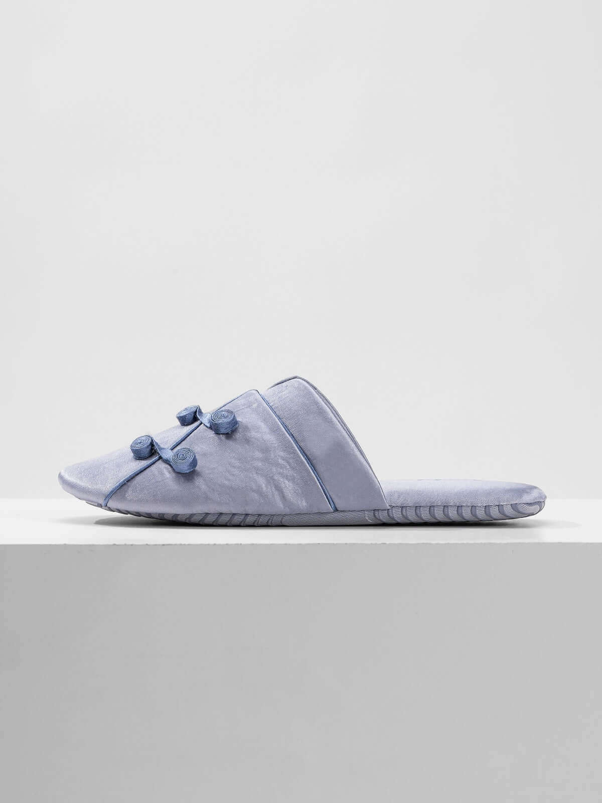 Crafted from soft satin fabric with a lustrous sheen, these slides offer a gentle touch against the skin, enhancing comfort and style.