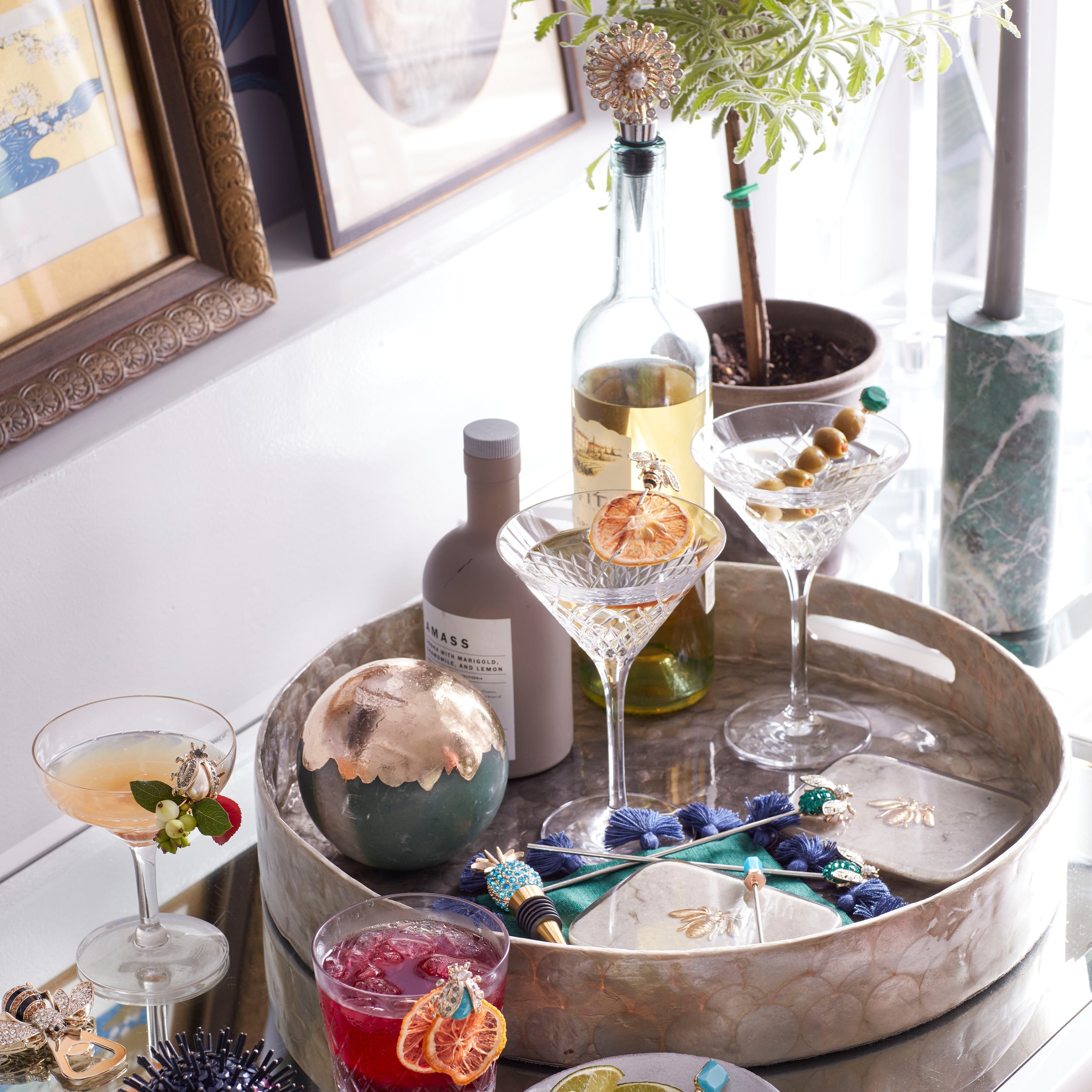 Adds a touch of natural luxury and sparkle to any bar cart