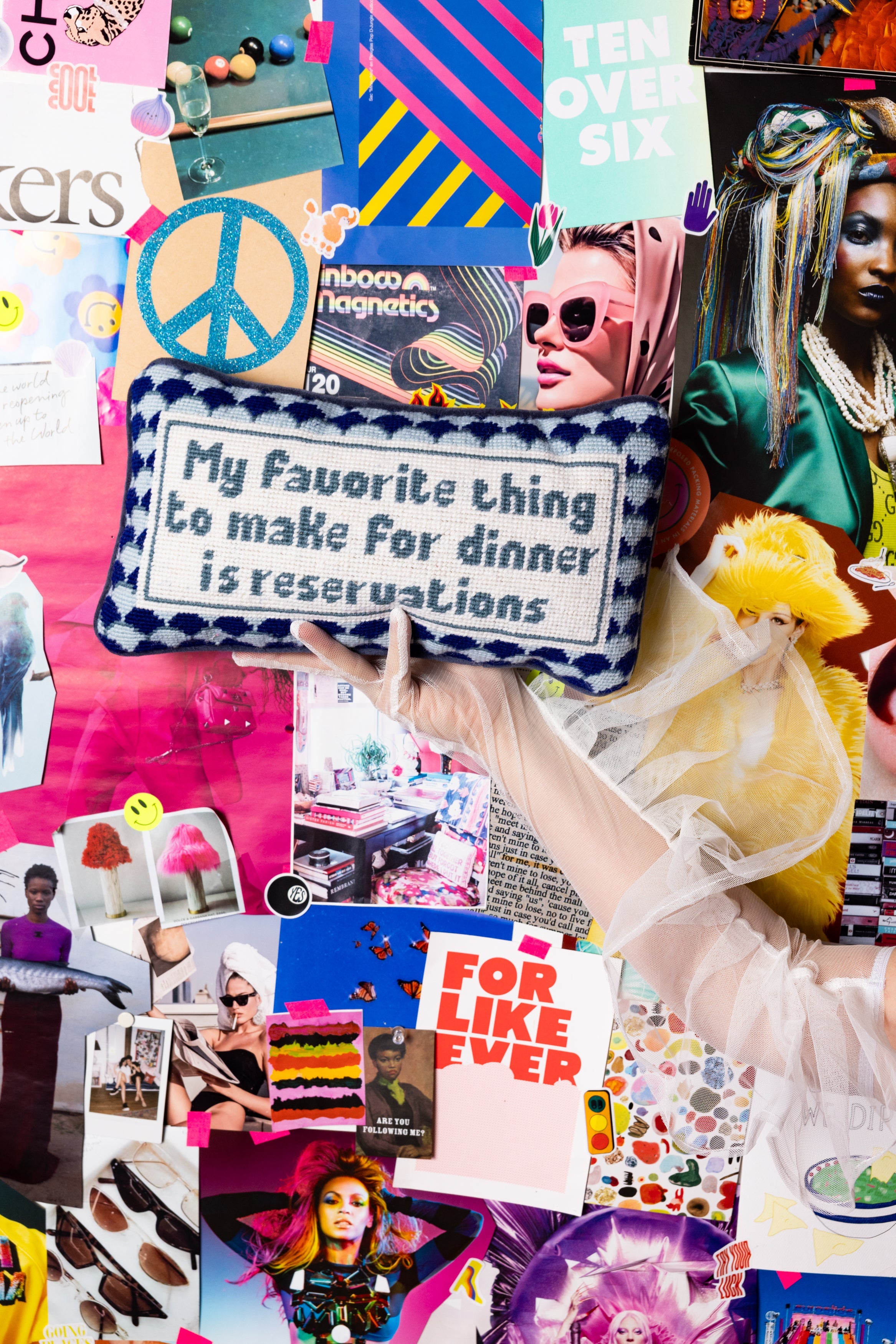 For the ones who know their culinary skills are best served outside the kitchen. This pillow is for those who say, ‘My favorite thing to make for dinner is reservations,’ because why cook when you can dine in style?