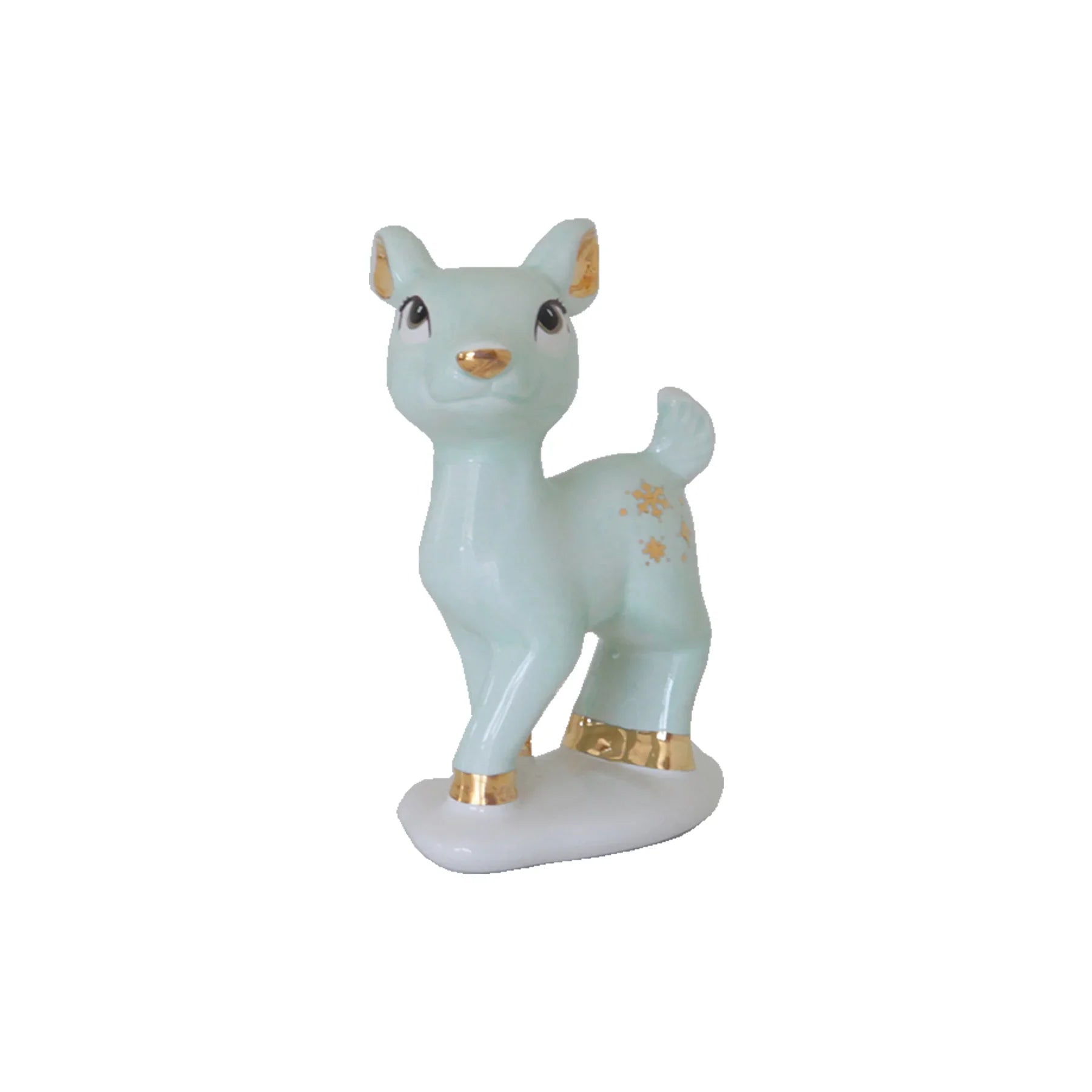 These hand-painted retro inspired reindeer babies make a whimsical and glamorous addition to your home for the holidays. Mix and match them to create a personalized look on your holiday table or mantle, or sprinkle them about for merry and bright touches throughout your home. Each piece is glazed by hand and adorned with hand-applied 22K gold accents.