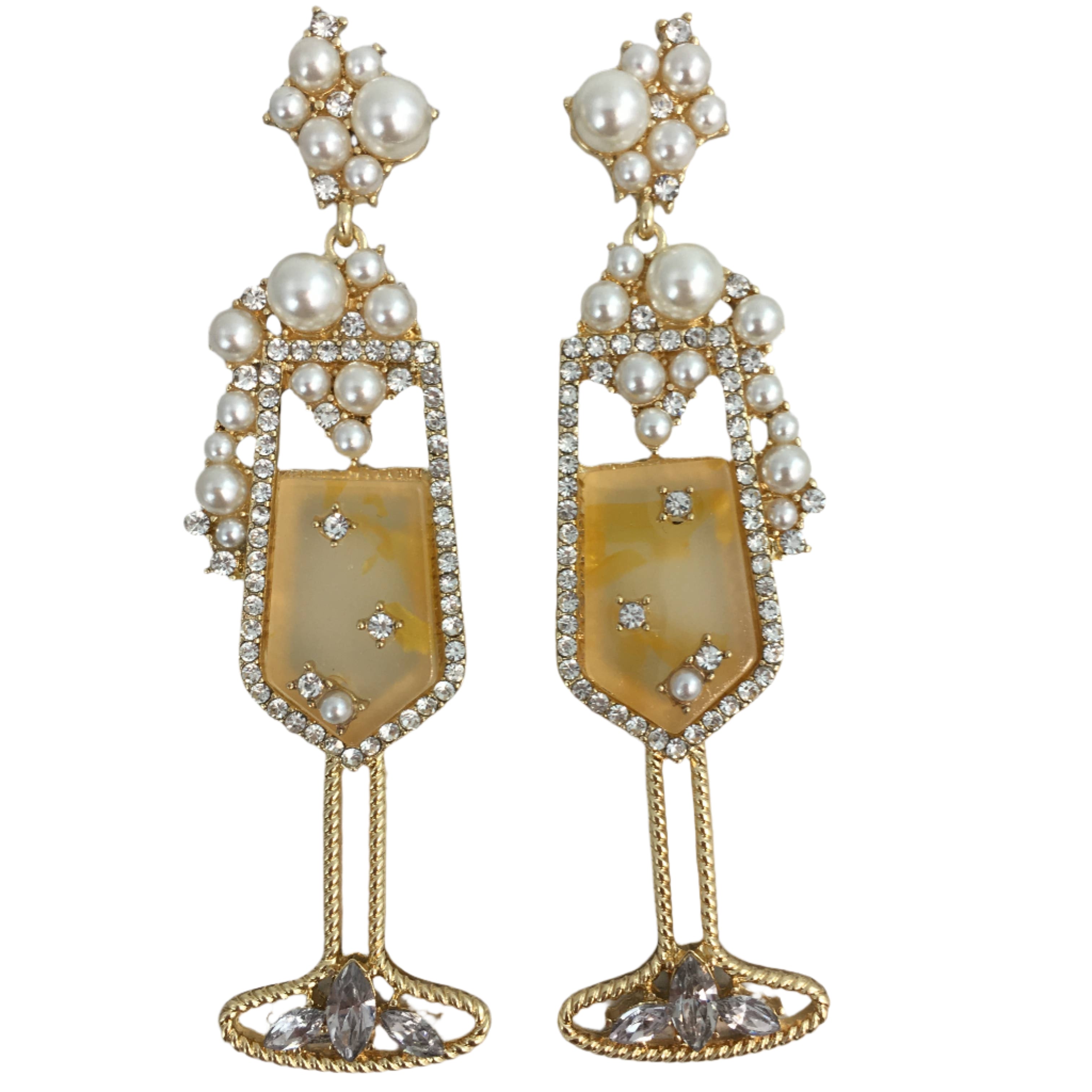 Make a toast to bold style with these champagne glass earrings, designed to dazzle! Measuring 3 inches long and finished in shimmering gold, these statement earrings bring sparkle and celebration to any look. Lightweight yet eye-catching, they're the perfect accessory for parties, events, or whenever you're feeling festive.