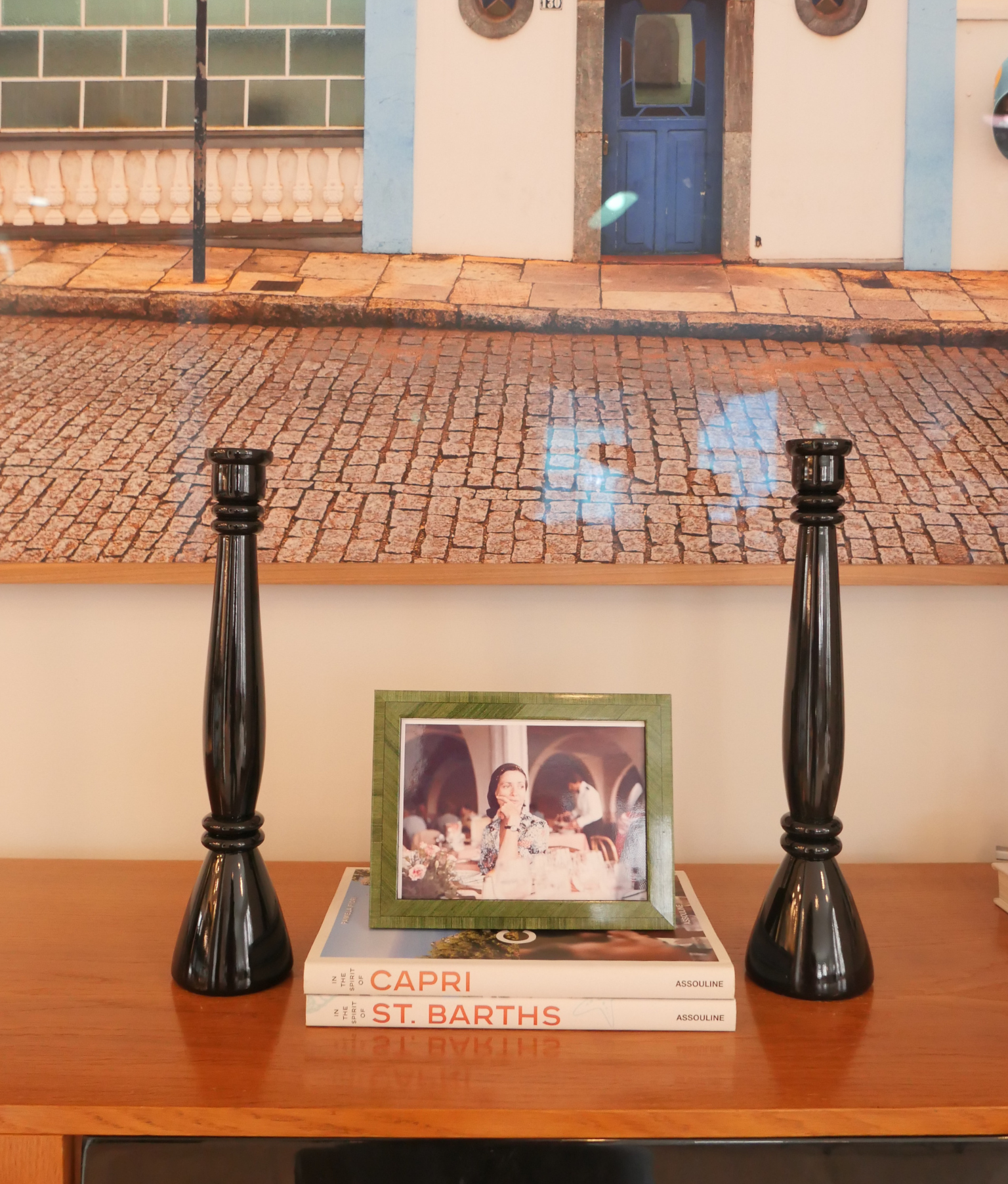 Striking in simplicity and rich in craftsmanship, these lacquered candle holders bring timeless elegance to any setting.
