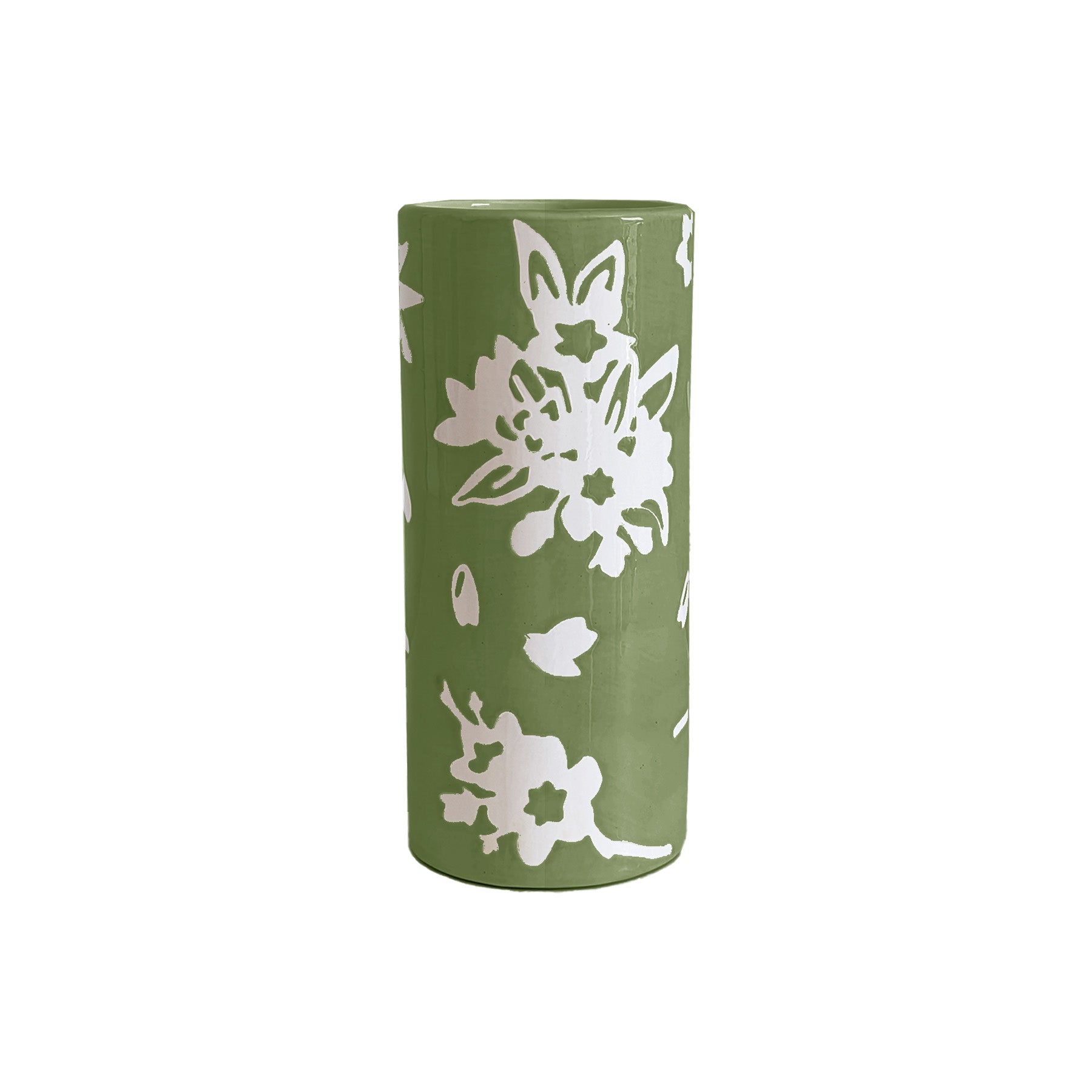 Our handcrafted vase brings an elegant touch of color to any space. Hand-painted with our new favorite motif composed of Japanese -inspired botanicals, these vases make a perfect gift or decor piece!