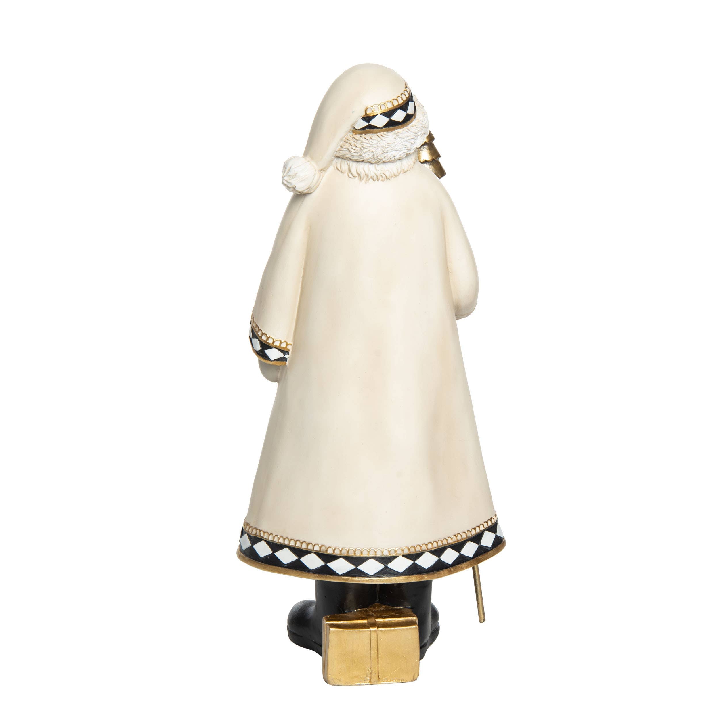 Elevate your holiday décor with this elegantly detailed Harlequin Trim Santa. Dressed in a refined cream coat adorned with black and gold diamond trim, he embodies a sophisticated, old-world charm while still feeling modern and elevated. Santa holds a gilded tree staff, adding a sculptural touch that makes this piece stand out on mantels, consoles, entry tables, or as part of a curated holiday vignette.