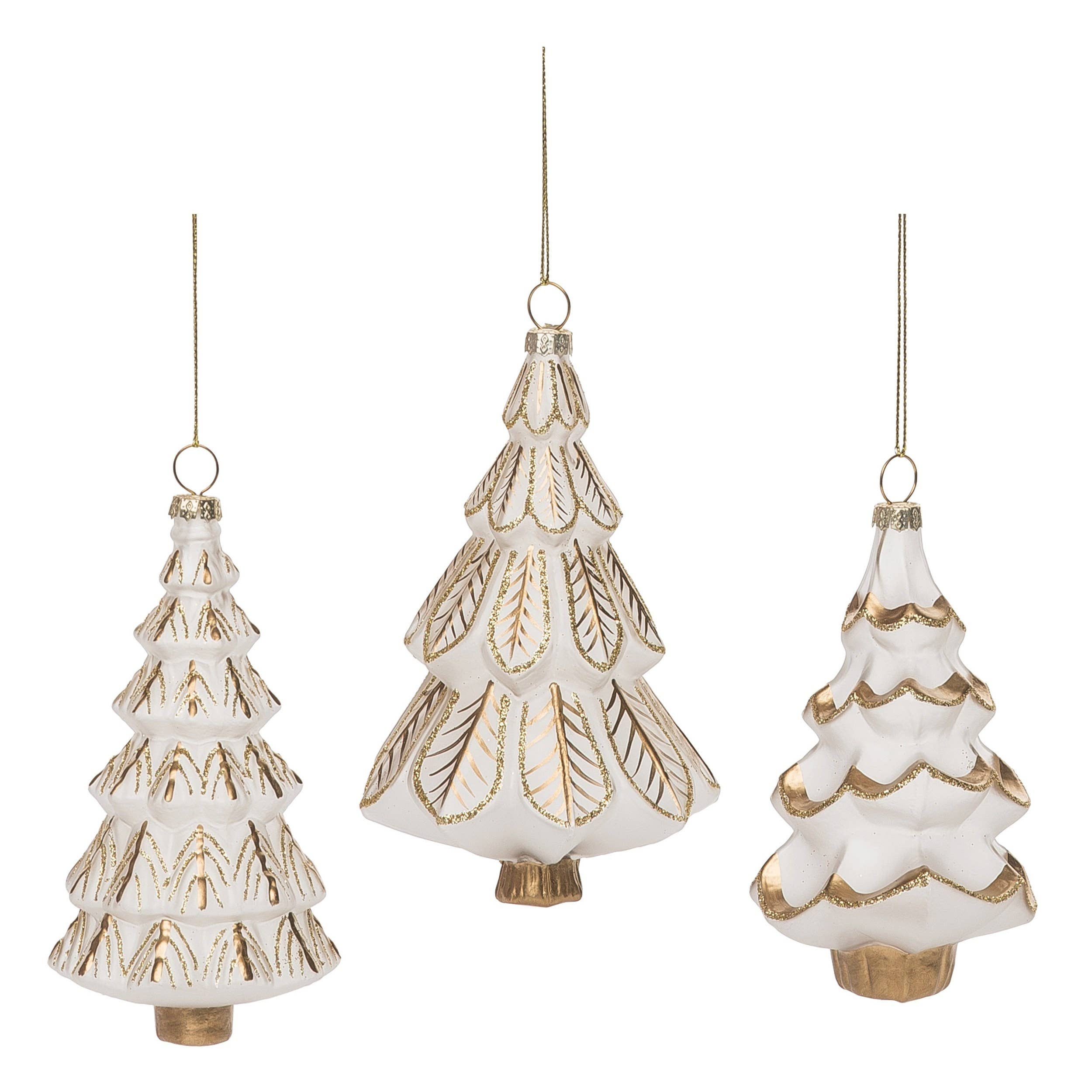 This ornament features layered branches with intricate gold leaf veining, creating a softly textured, elegant look. The frosted white finish paired with the fine metallic detailing gives it a refined, heirloom-inspired presence. Perfect for trees with a classic, old-world, or chinoiserie holiday palette.