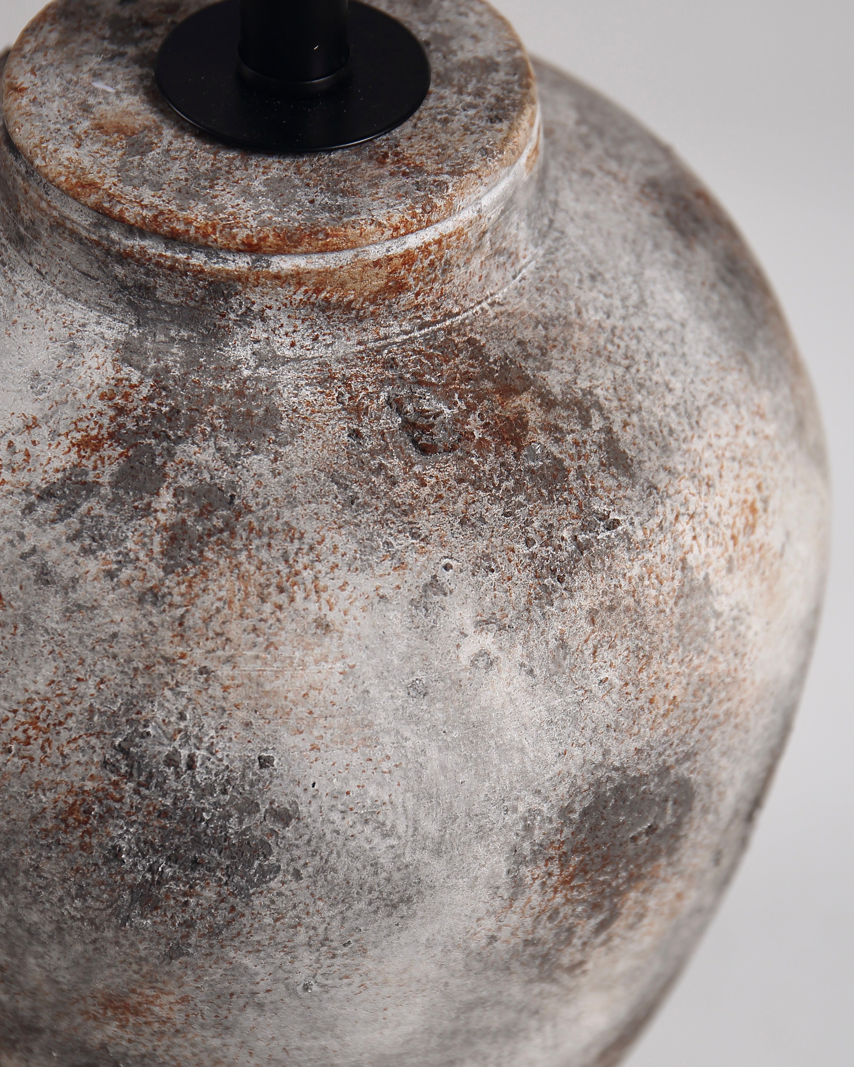 The Sarah Lamp merges functionality with artistry, combining a lamp and vase in one innovative piece. This dual-purpose design offers both illumination and aesthetic appeal with its dark neutral color palette featuring shades of grey, brown, dark brown, and a subtle hint of brick red, adding depth and warmth to any space.