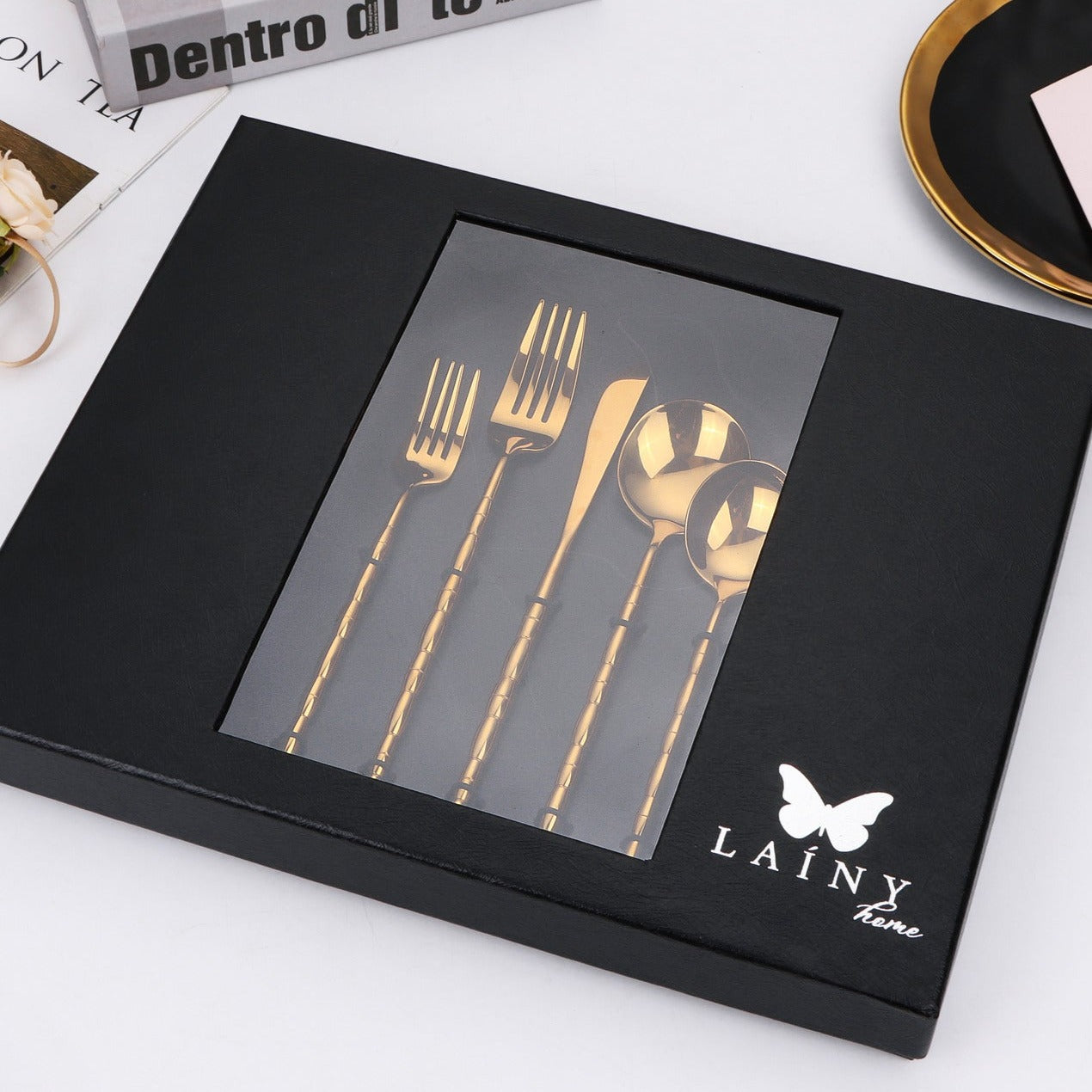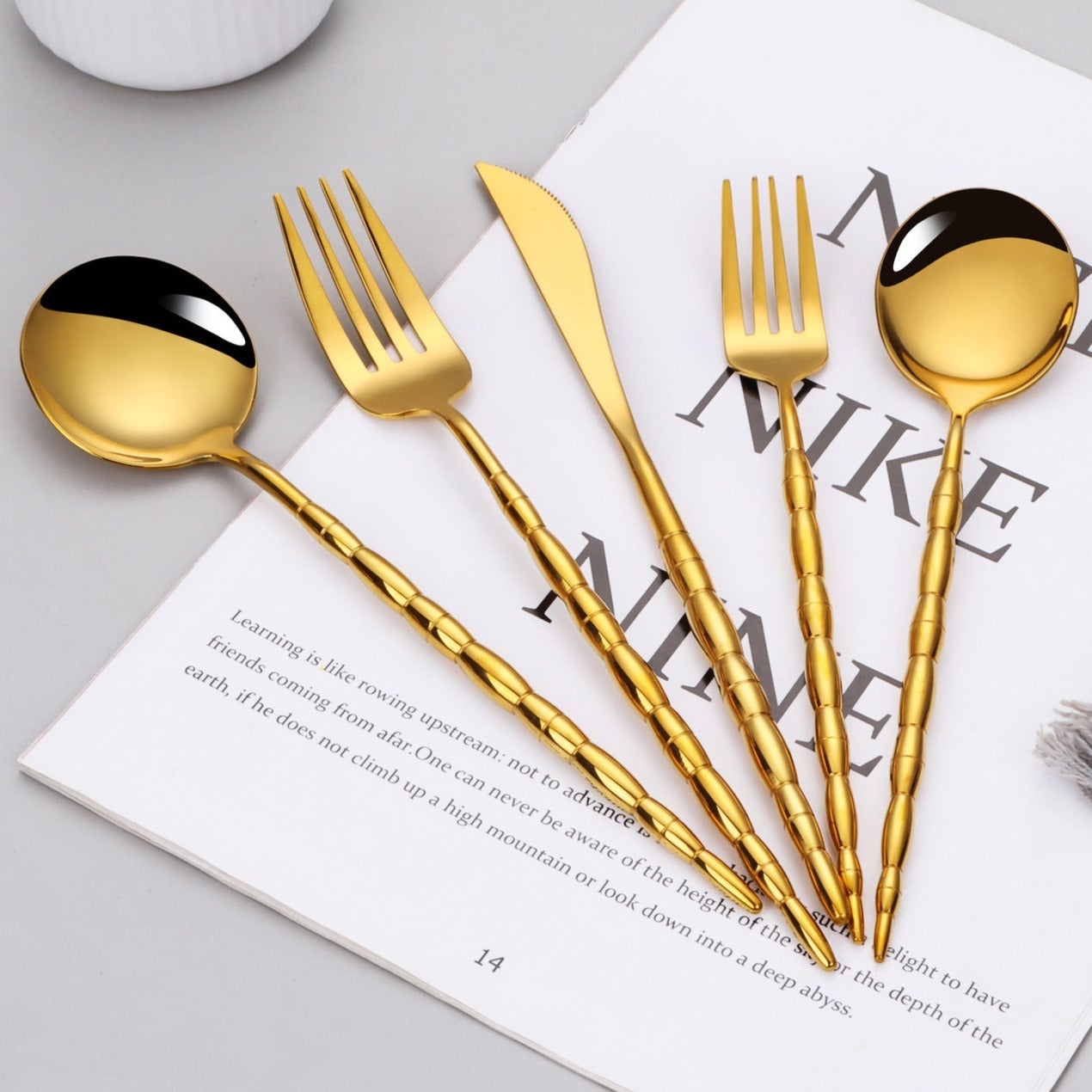 thoughtfully curated to elevate your dining experience. Crafted with a sleek, modern design and a stunning finish, this high-end silverware set is as eye-catching as it is functional.