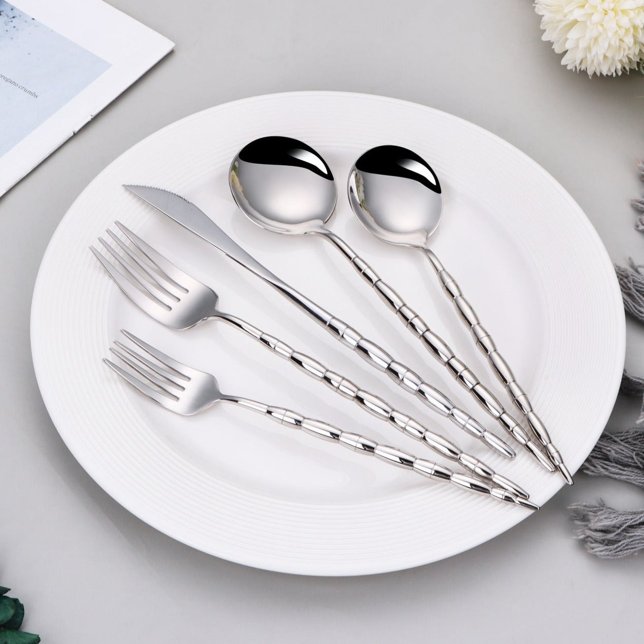 This beautifully balanced, high-end flatware set features a sleek silver finish that adds a refined touch to any table setting, whether you're hosting a dinner party or elevating your daily meals.