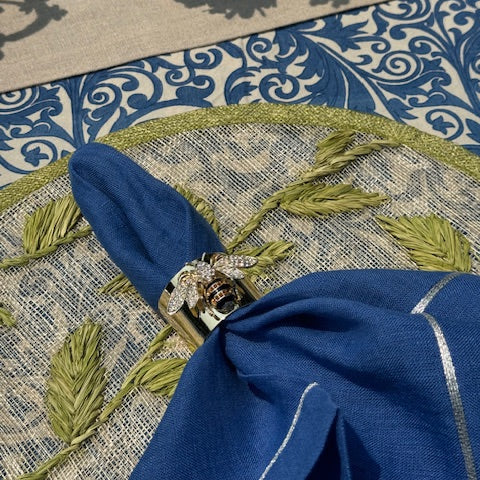 Silver Trim Dinner Napkins – Bright Blue (Set of 2)