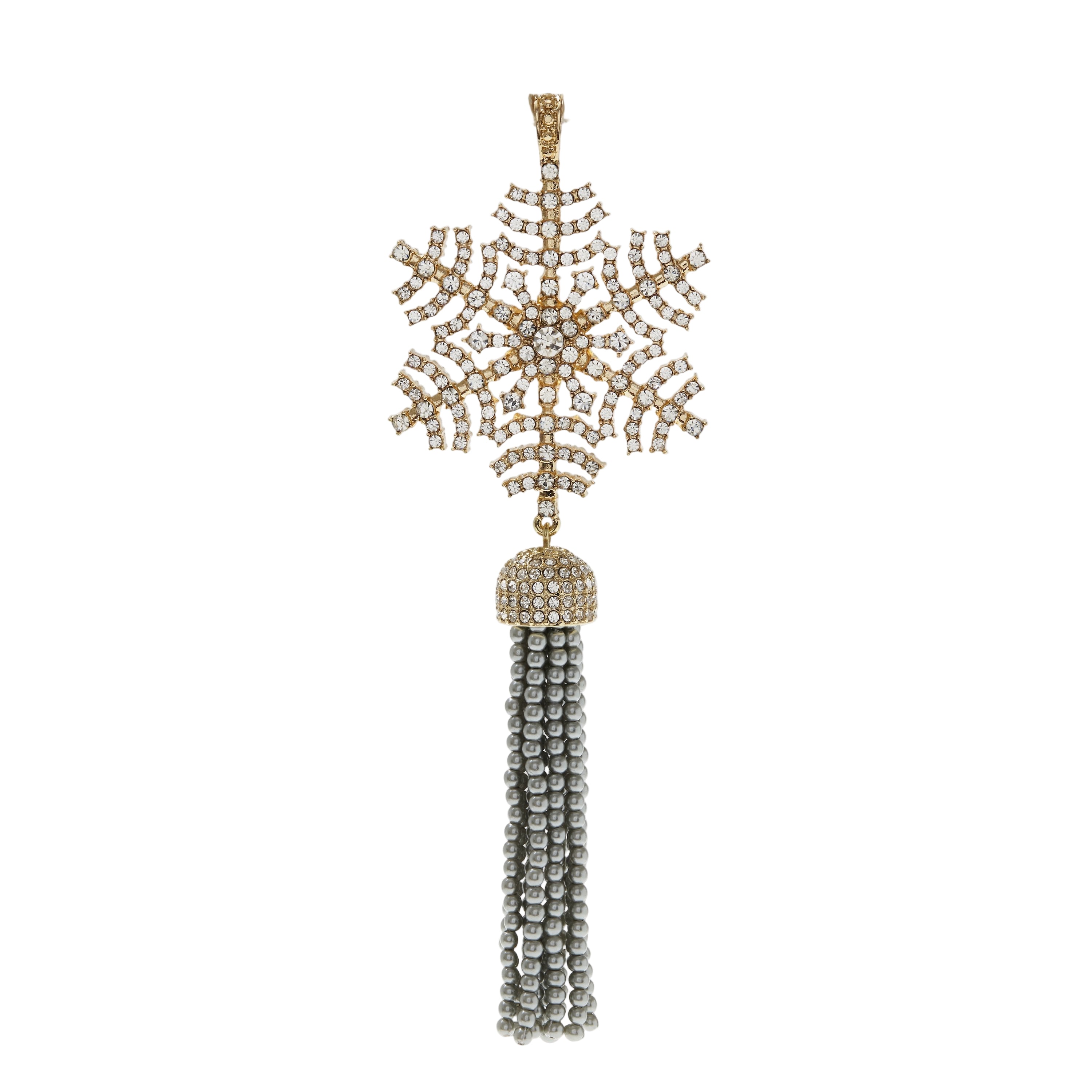 We love snowflakes and we love tassels! So I couldn't wait to put them together for a dramatic holiday ornament! It's super sparkly and will be stunning under the Christmas tree lights! The tassel is made of small, hand-strung pearls...so this one looks and feels VERY special... for sure a future heirloom!