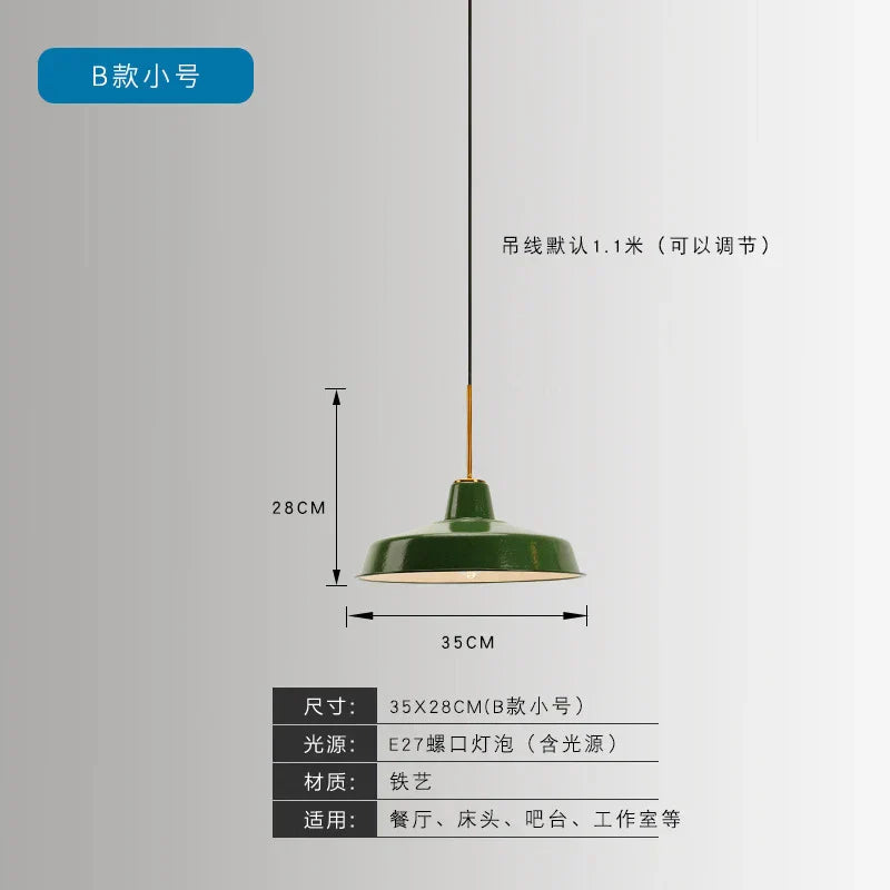 Transform your space with Sophie's American Vintage Green Pendant. This nostalgic piece infuses your room with the charm of yesteryears, inspired by the industrial era of America. Its vintage green hue and iron construction add a timeless elegance to any setting, whether it's a restaurant, home decor, or hotel ambiance.