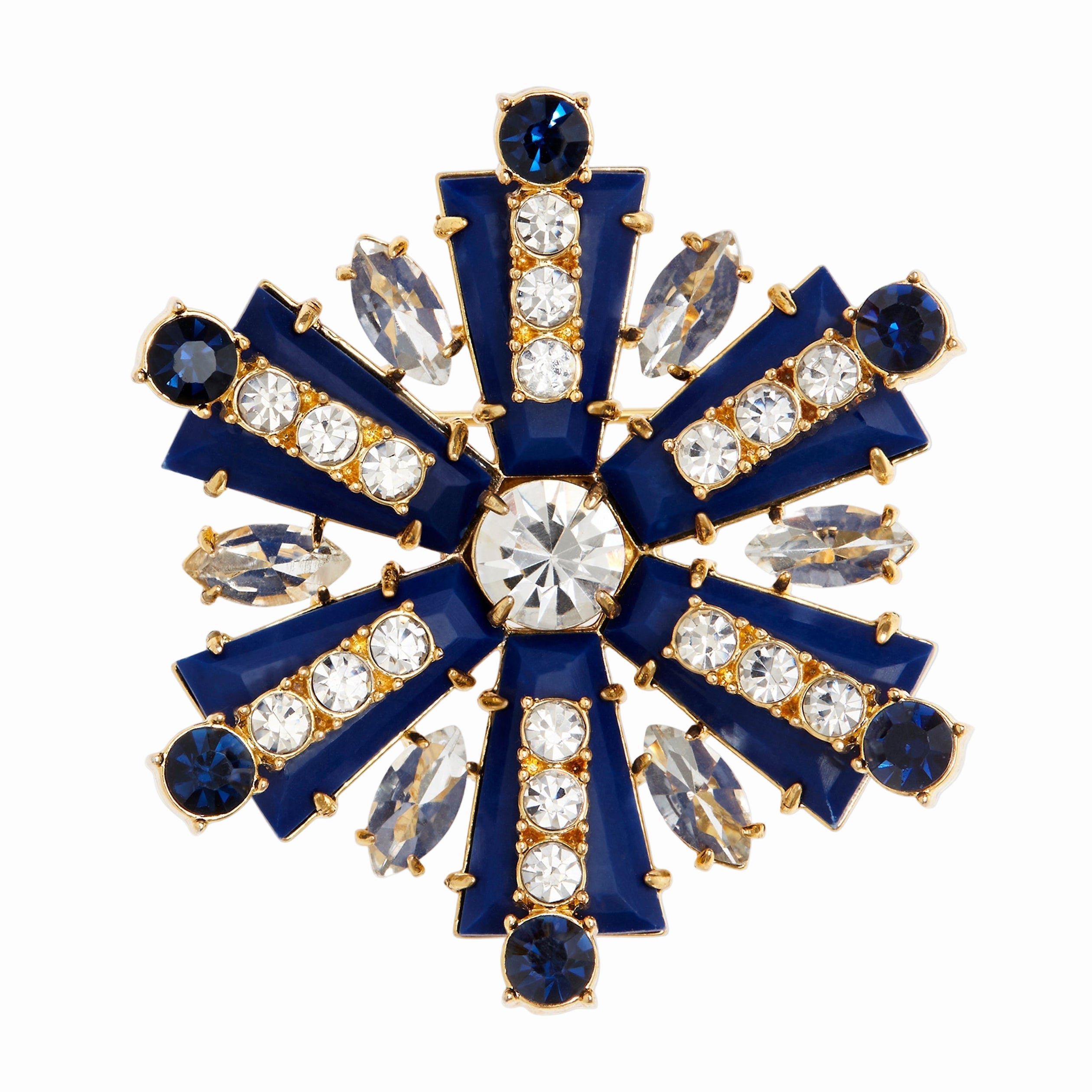 A striking mix of navy and crystal makes this lapis starburst brooch a timeless statement piece