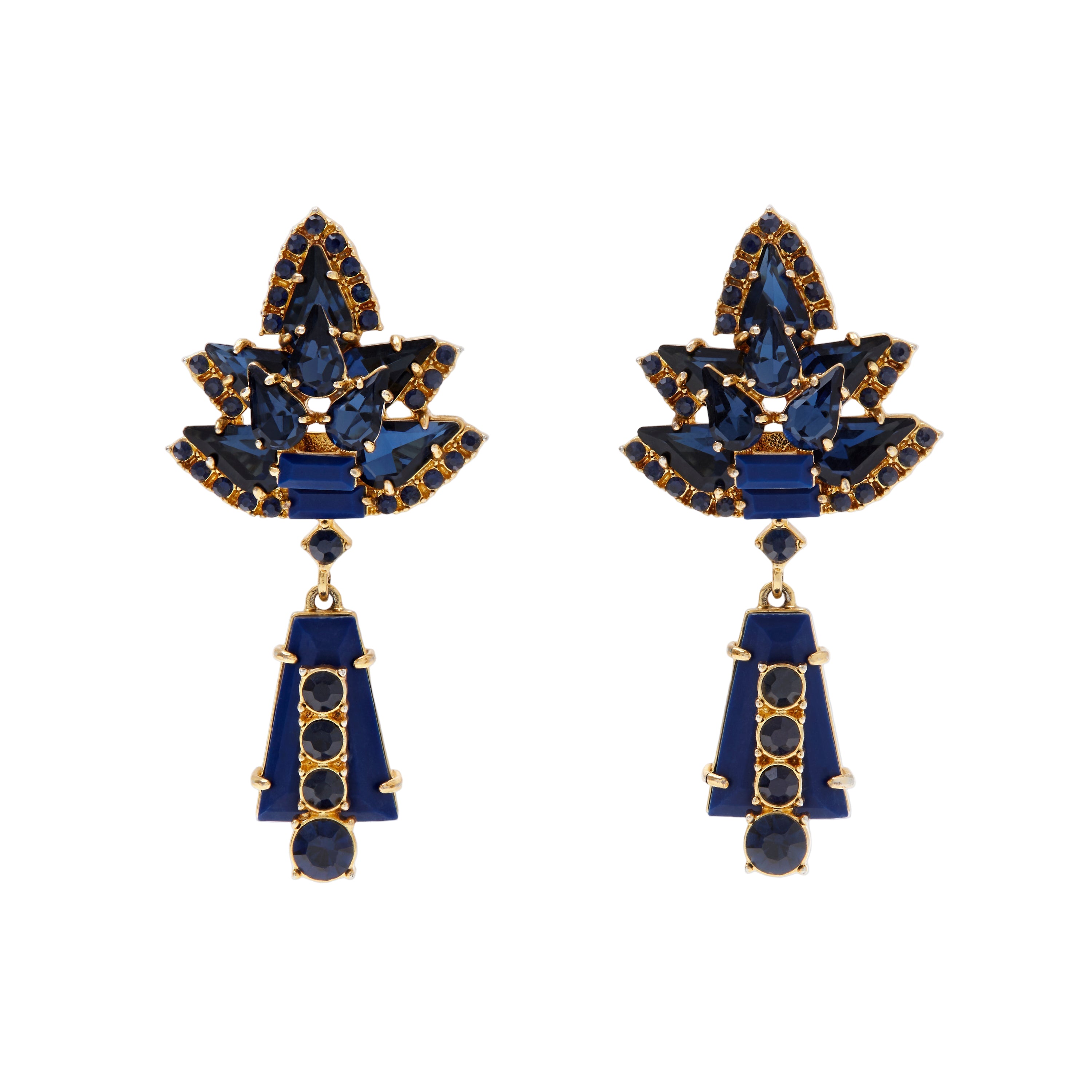These striking lapis lazuli starburst earrings bring together bold geometry and feminine detailing for the perfect statement accessory. Plated in 24k gold and featuring genuine lapis stones, they create a gorgeous tone-on-tone effect when worn with navy — sophisticated, modern, and effortlessly chic. Designed with an Art Deco–inspired silhouette, they pair beautifully with everything from sweaters to dressy tops.