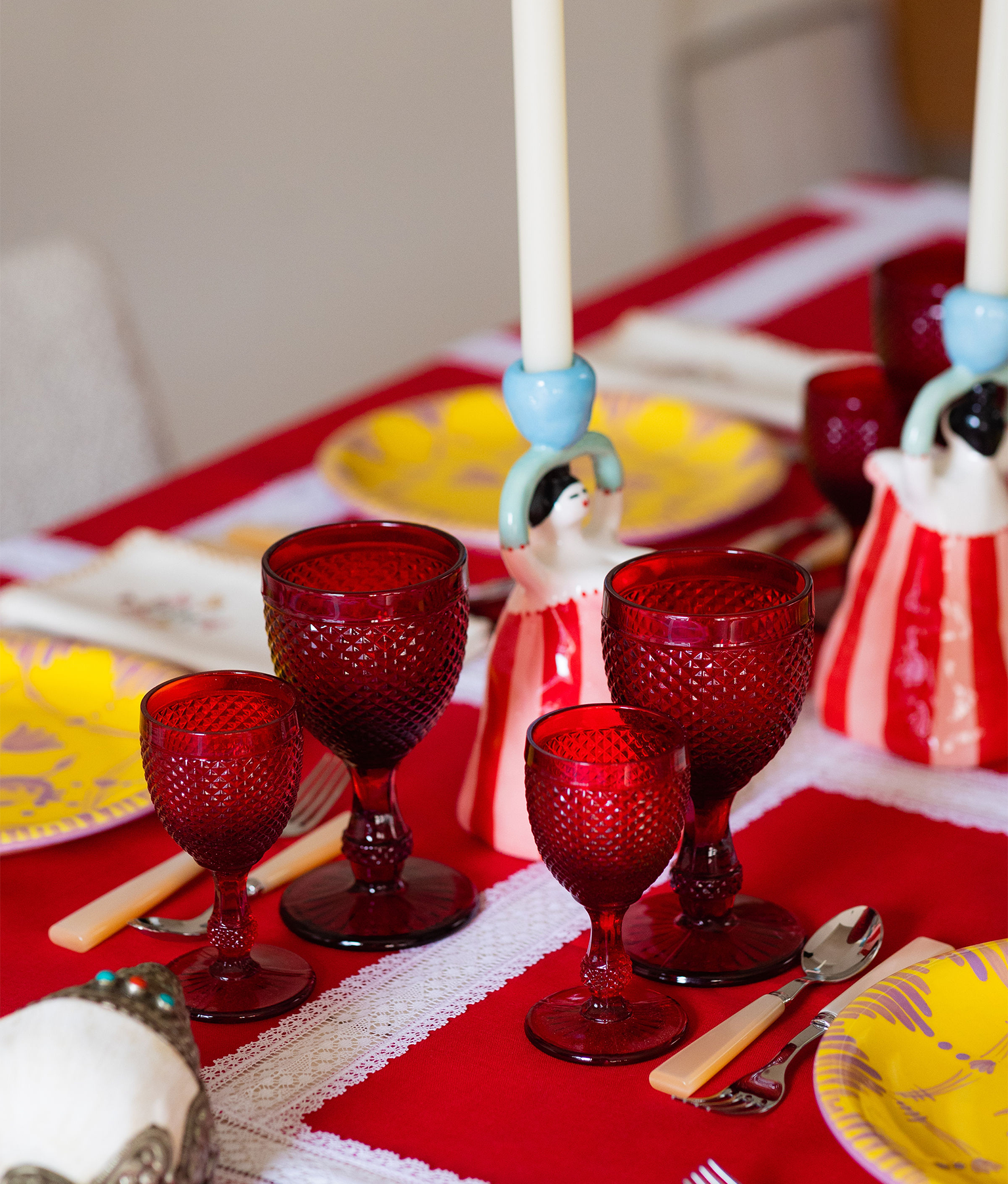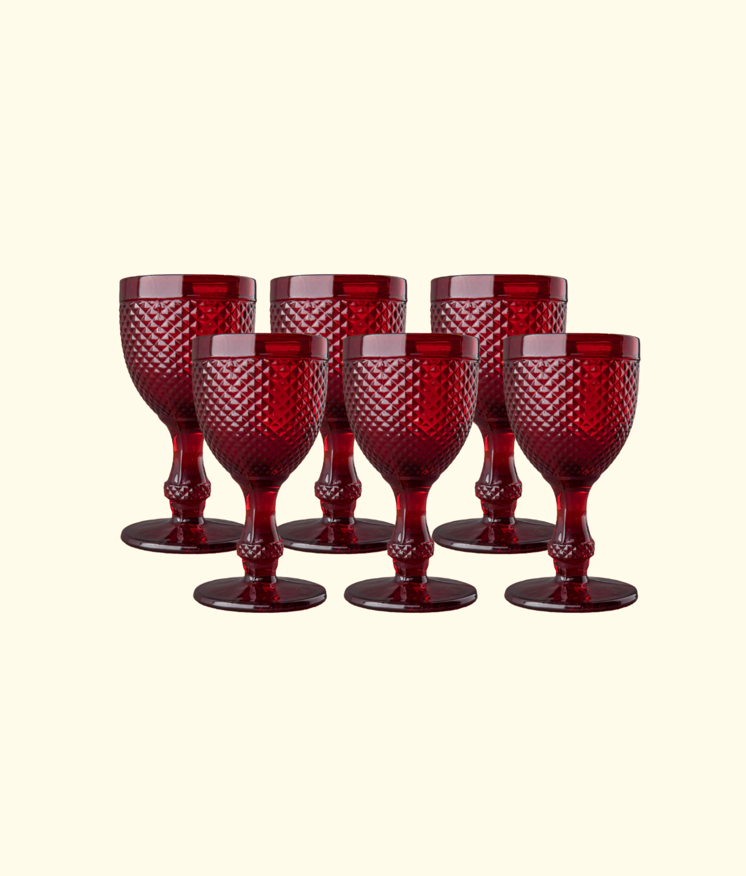Produced in Europe, these timeless stemmed red water glasses will enhance any table setting. Pair with the same colored stemmed wine glass or mix it up with one of the other color ways for an interesting and elevated aesthetic.