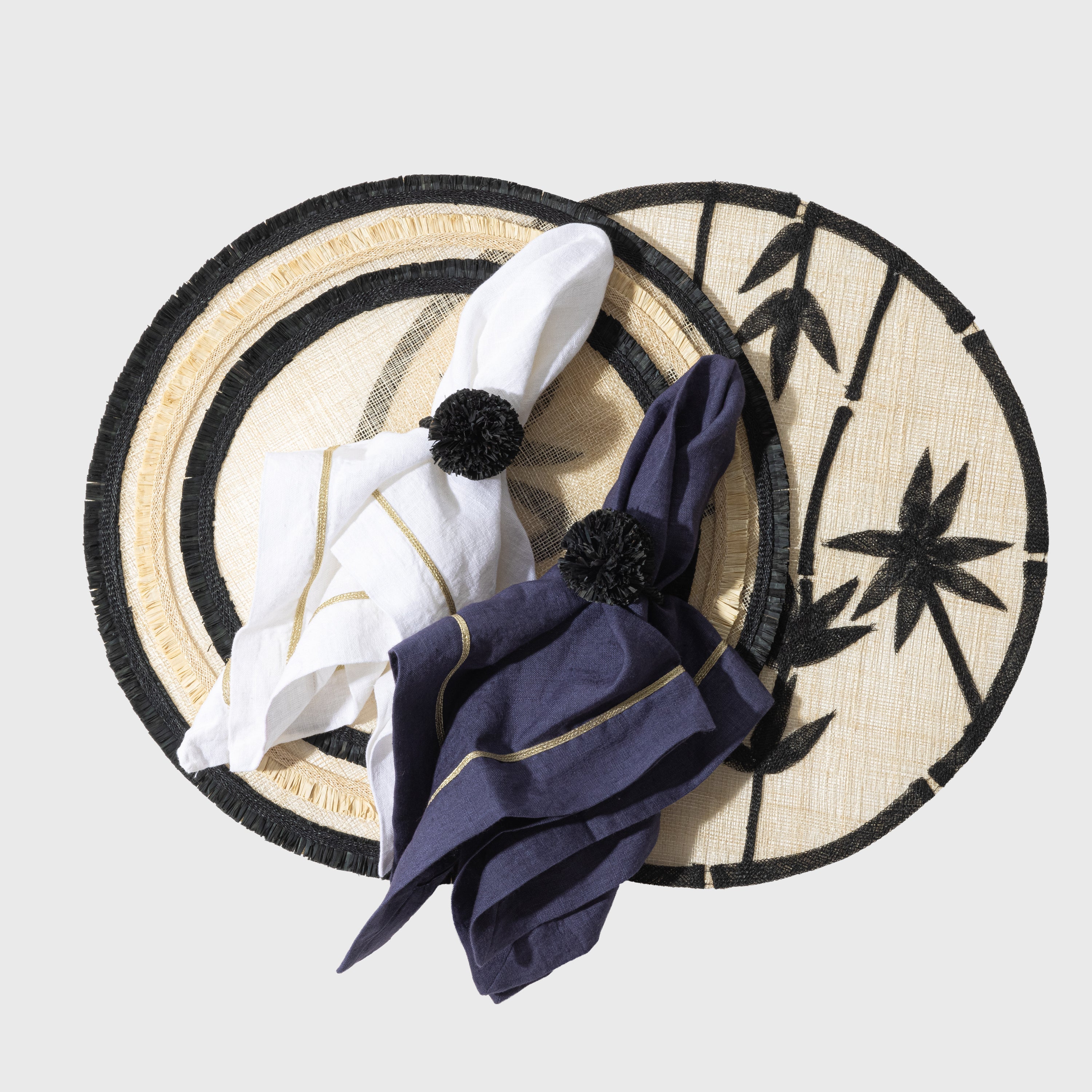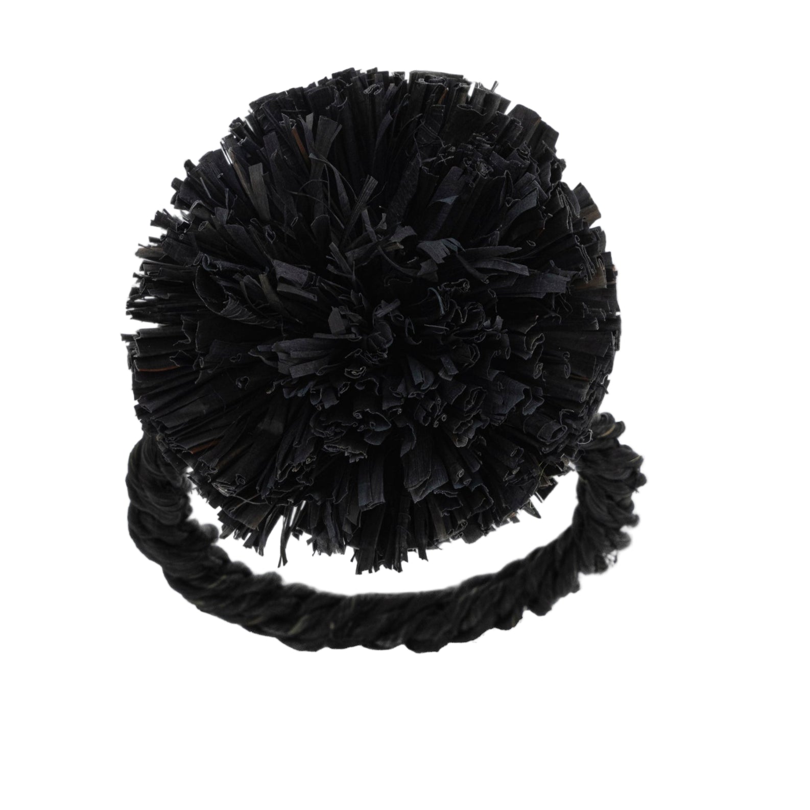 Straw Pompom Napkin Rings – Black (Set of 4)