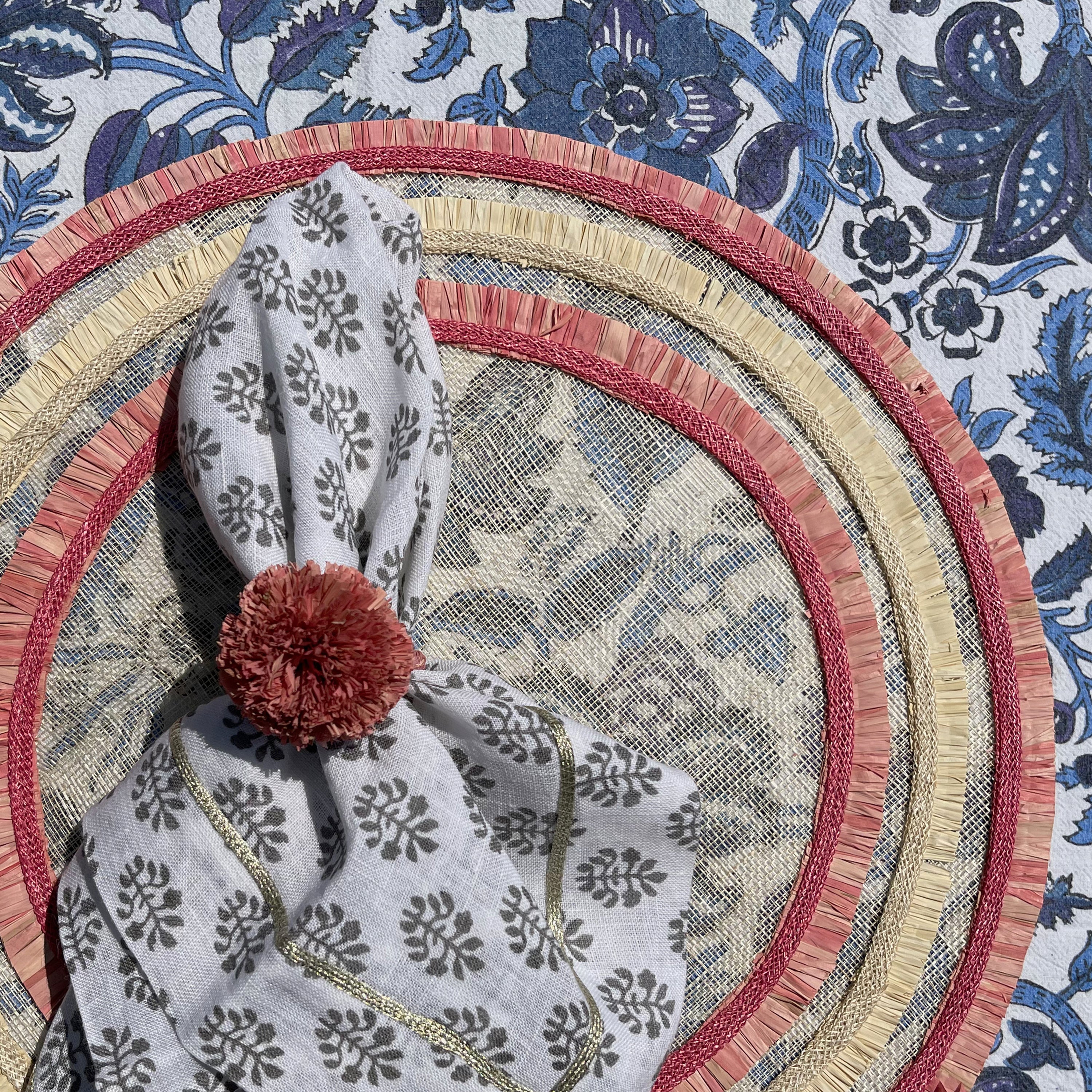Straw Pompom Napkin Rings – Pink (Set of 4)