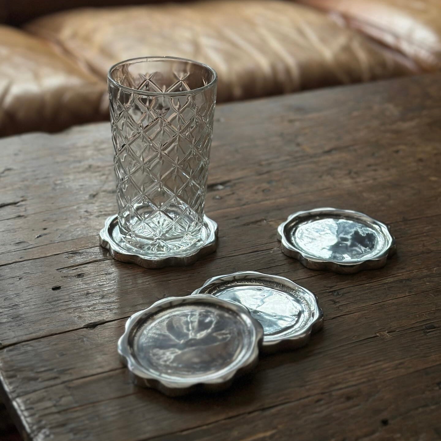 Scalloped and compact—the Sun Coasters carry the rhythm of the Sun series into a smaller form.