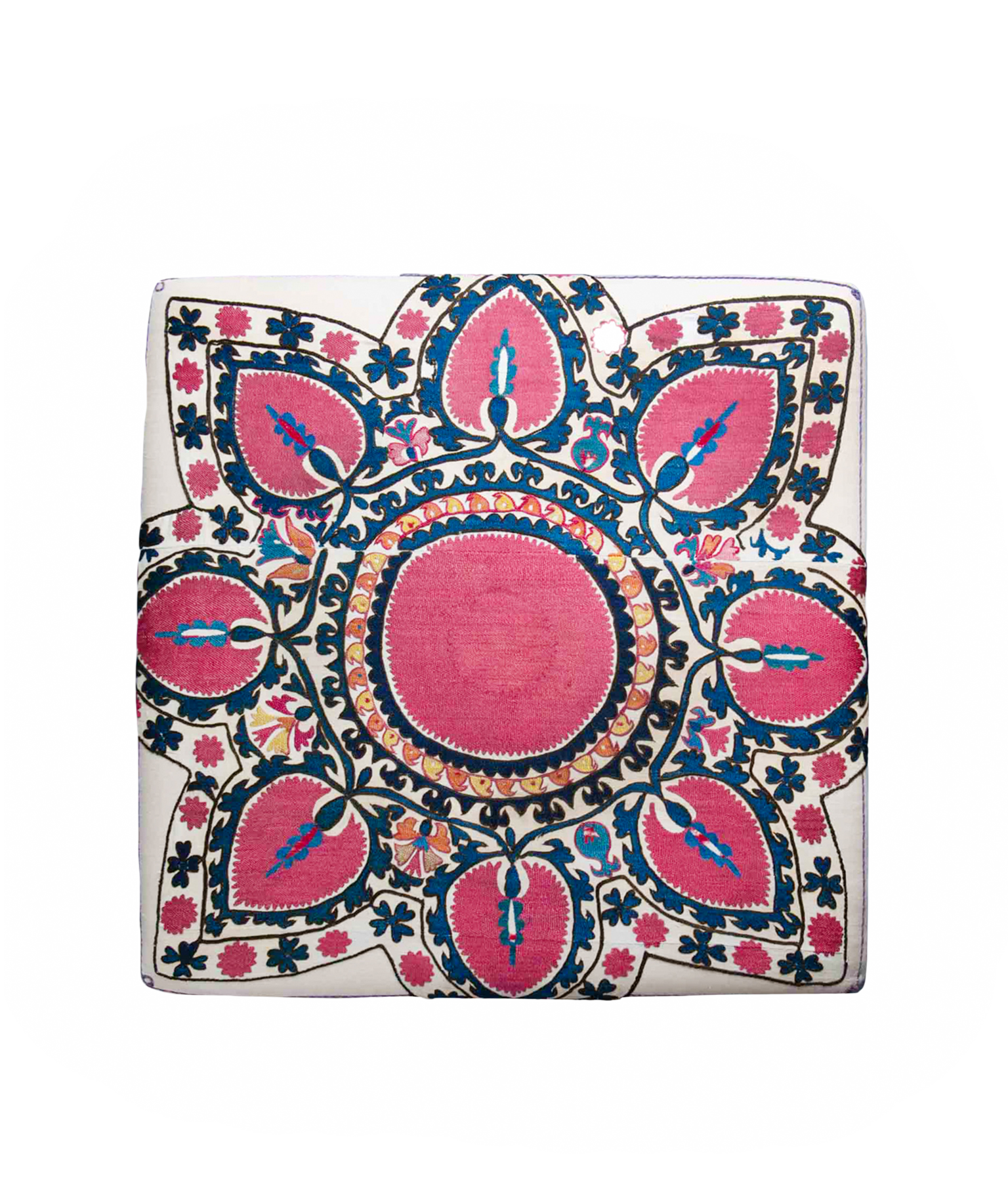 It's amazing what a handmade ottoman from the Sirocco Collection can do for a room. Suzani for Spring features its namesake 18th Century fabric in a vibrant pattern blooming out from the center.