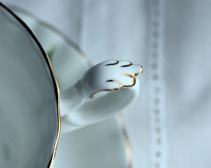 Teacup with Saucer by Royal Albert , England. Hand Painted Trillium. Beautiful Shape and Decor of Handle. Antique item , highly collectible.