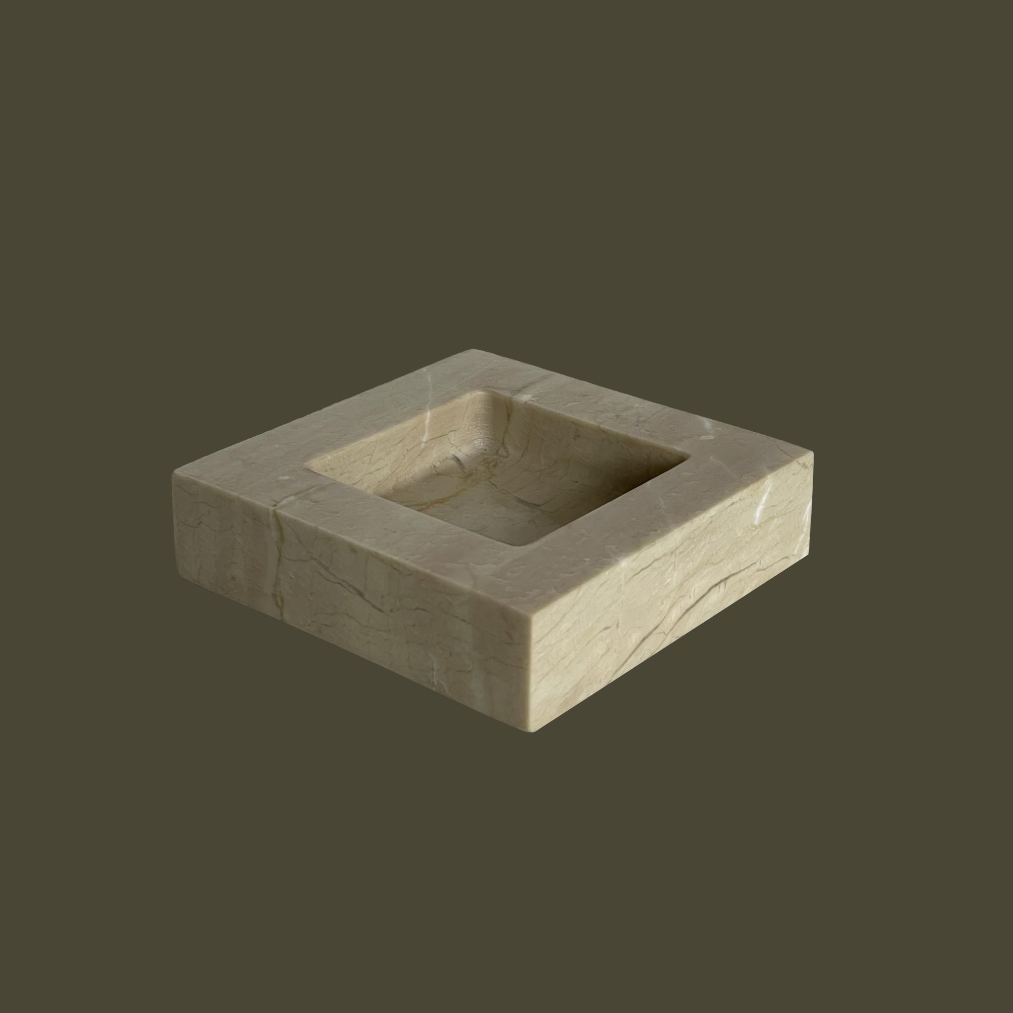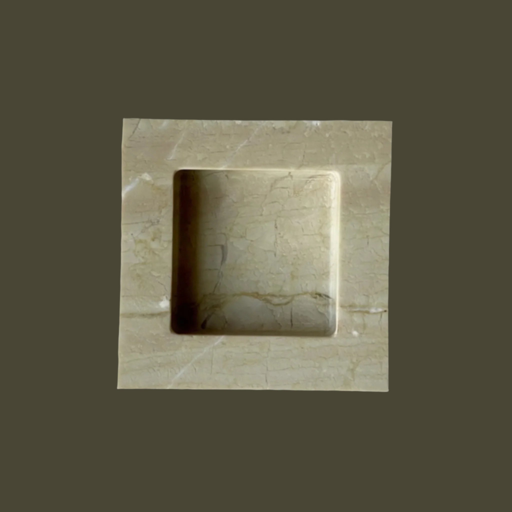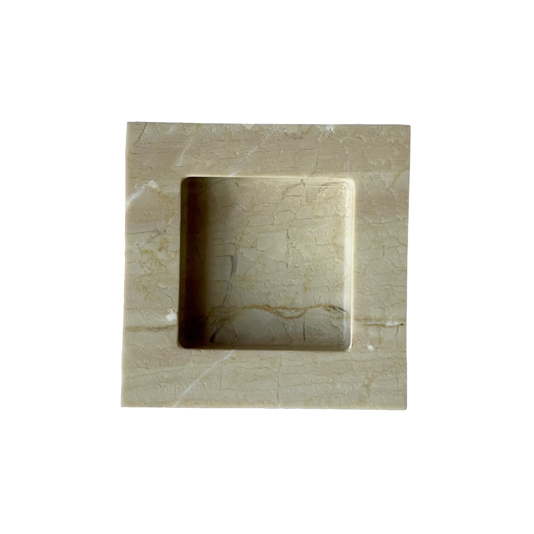 Carved from a single block of stone, its 5.5″ frame is thick in profile yet softened by hand-finishing. Scaled for jewelry, keys, or bedside essentials, it carries both utility and the character of its subtly irregular form.
