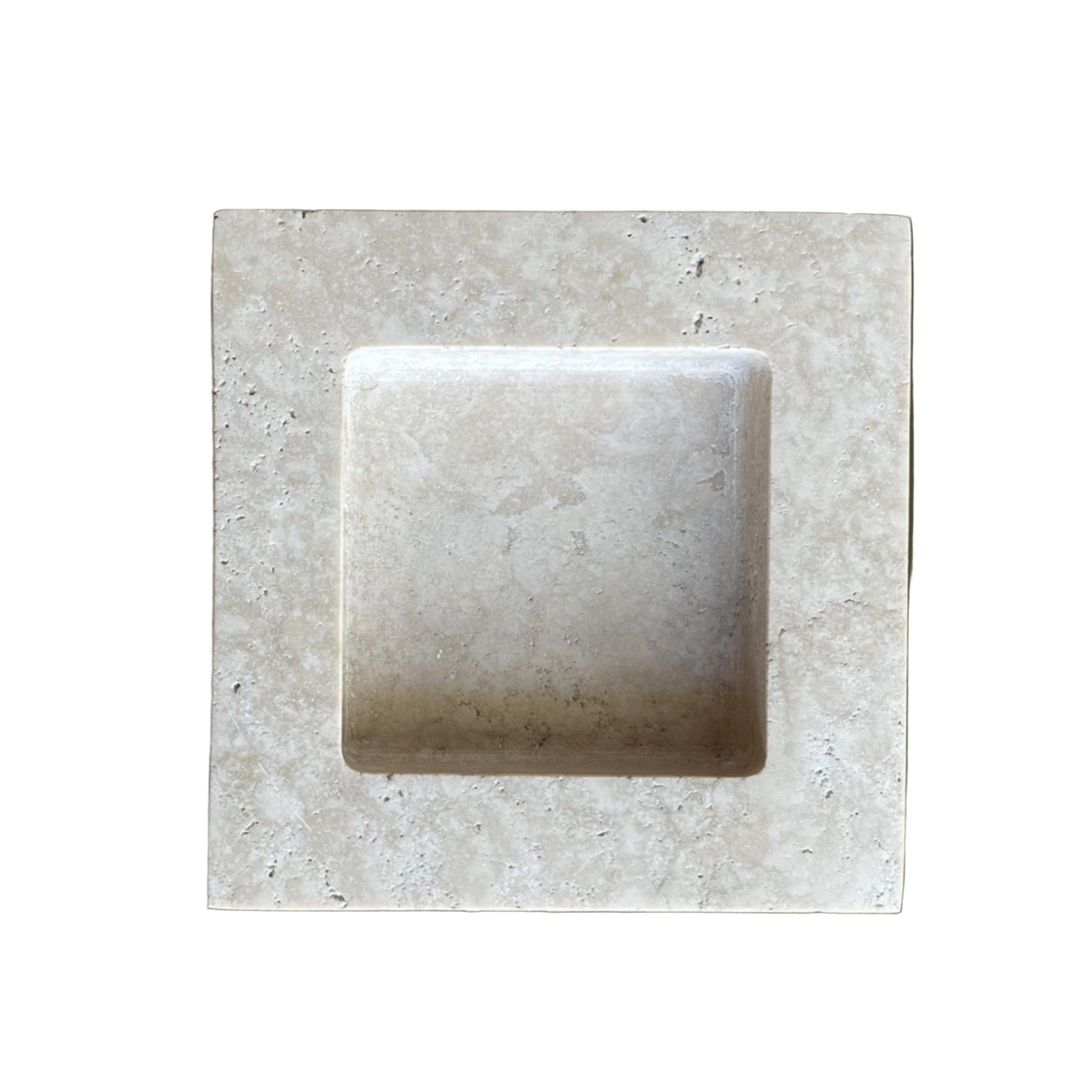 Carved from a single block of stone, its 5.5″ frame is thick in profile yet softened by hand-finishing. Scaled for jewelry, keys, or bedside essentials, it carries both utility and the character of its subtly irregular form.