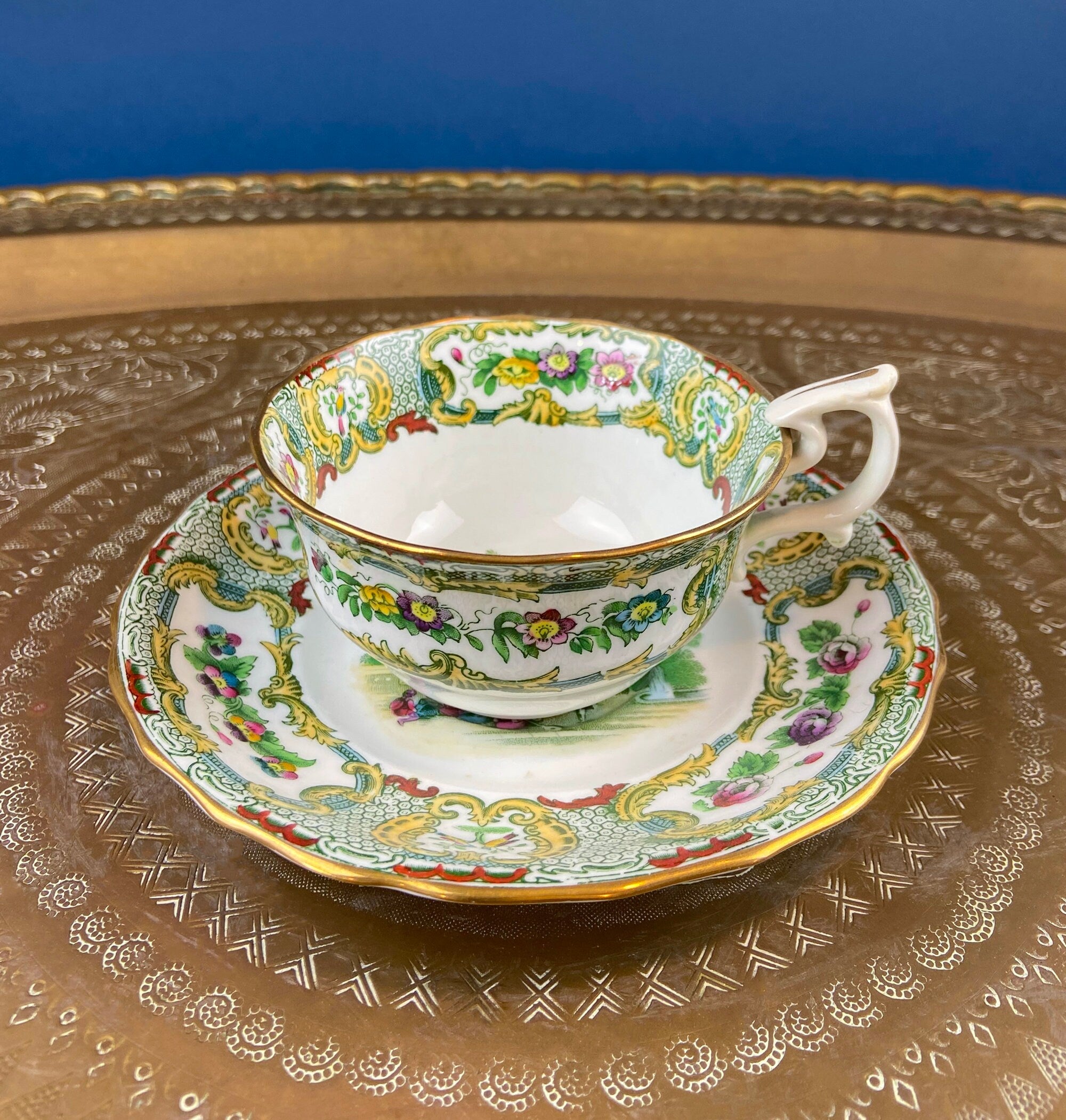 Tea or Coffee Set by Lenox. Ming Coupe, Asian Motif. Set of 9 Porcelain Cups and Saucers, 11 8" Salad Plates, and 12 6.5" Dessert Plates. Beautiful Creamy Off White Coloring. Excellent Condition. Marked by Manufacturer.