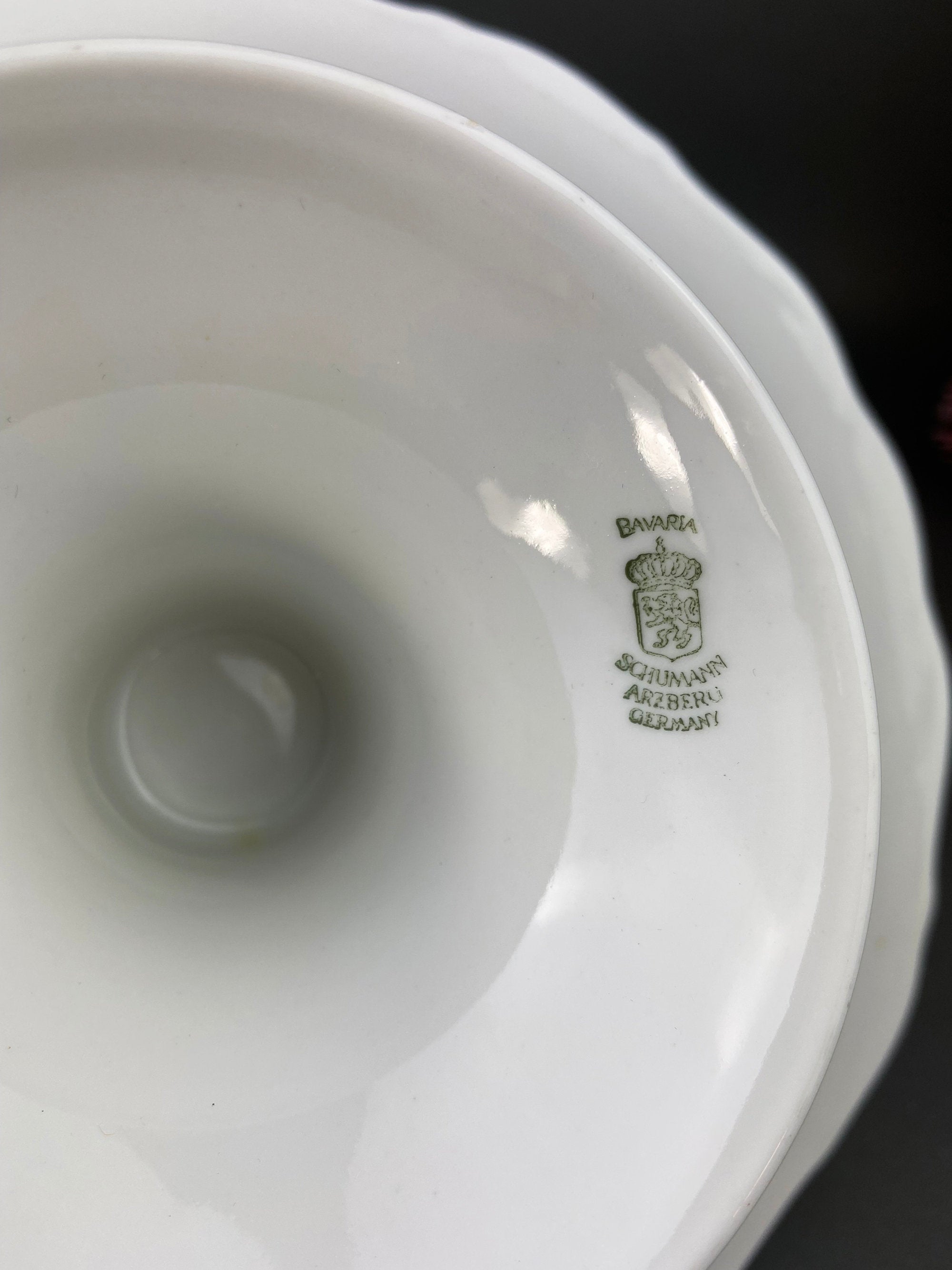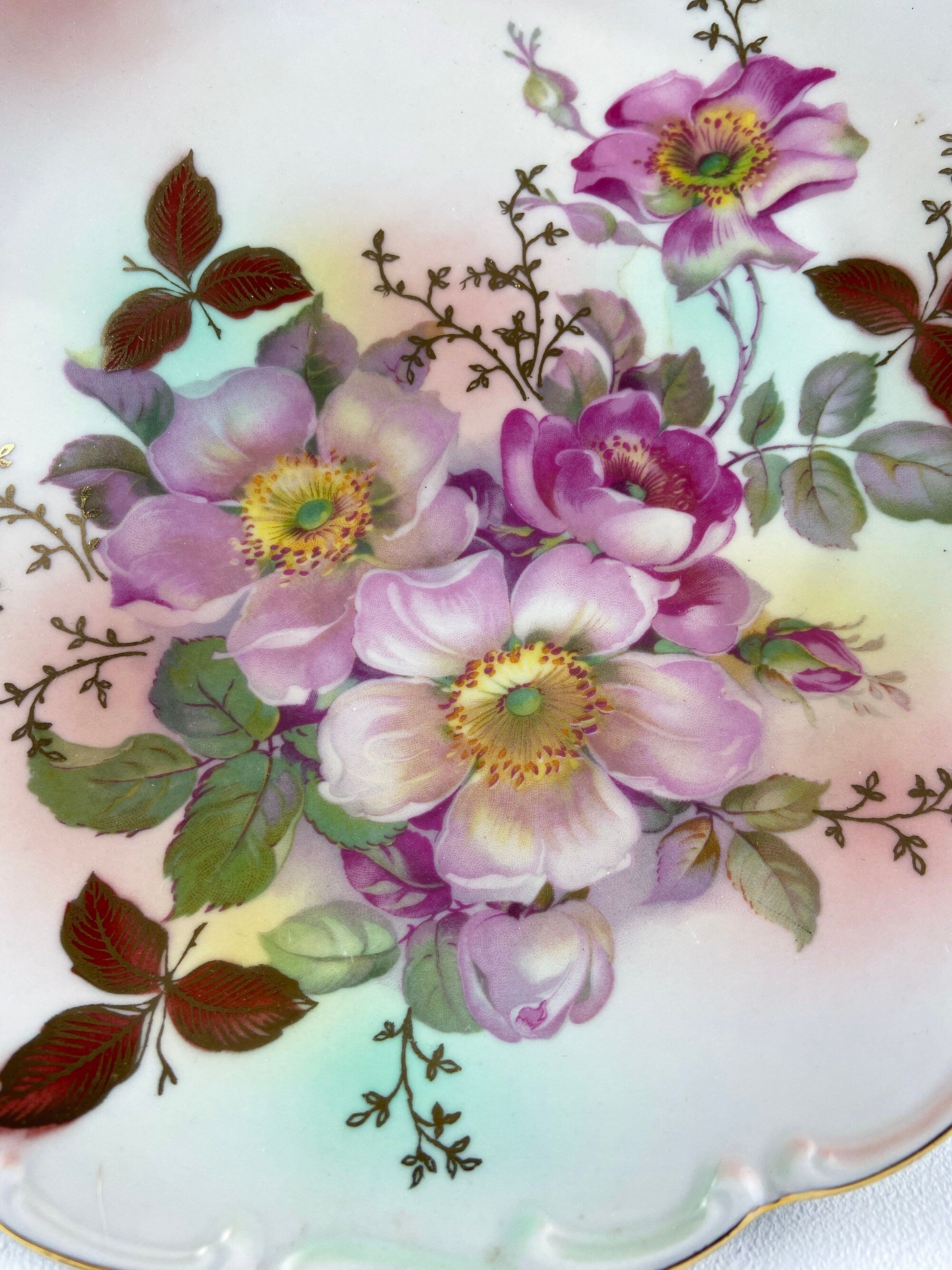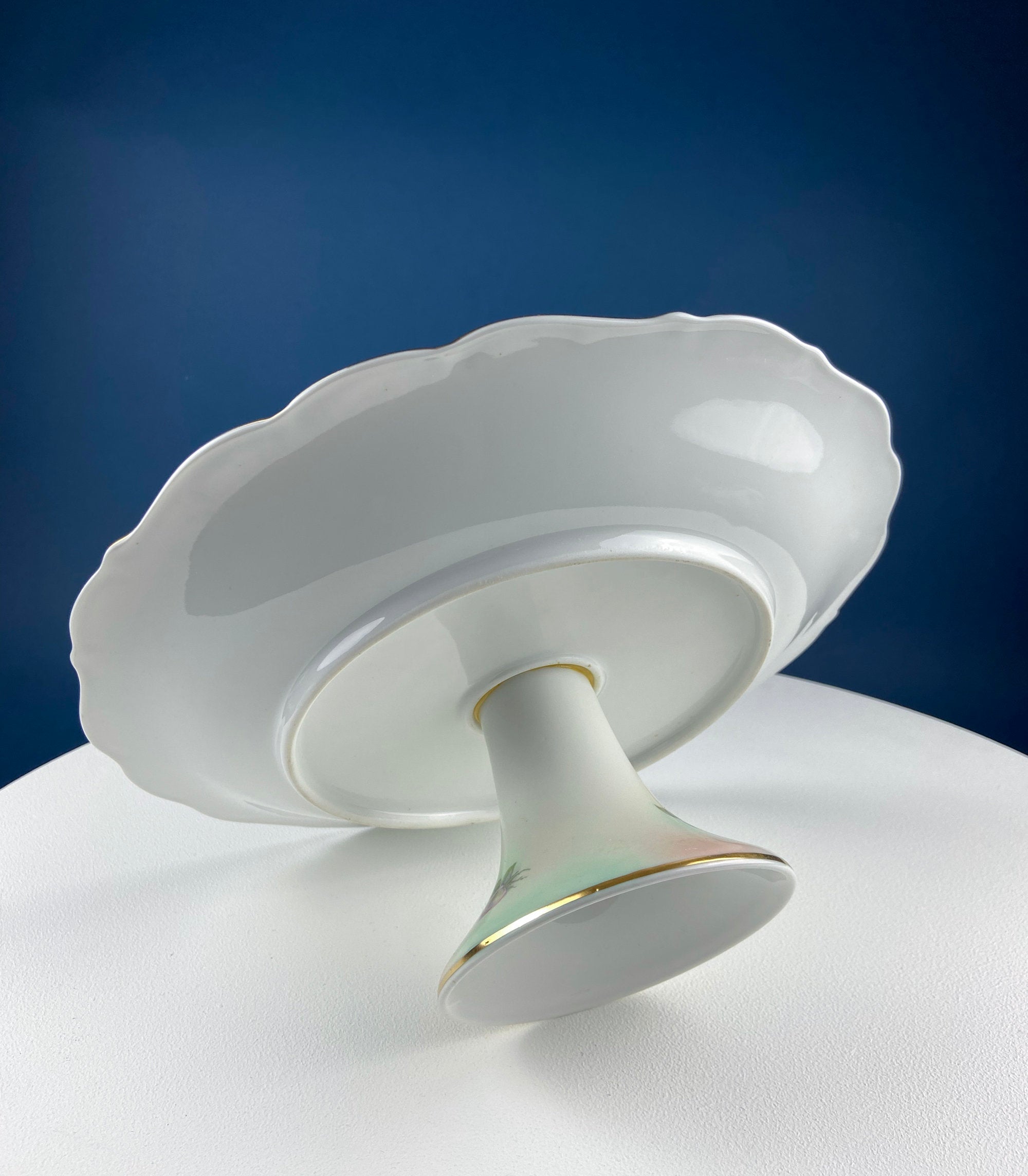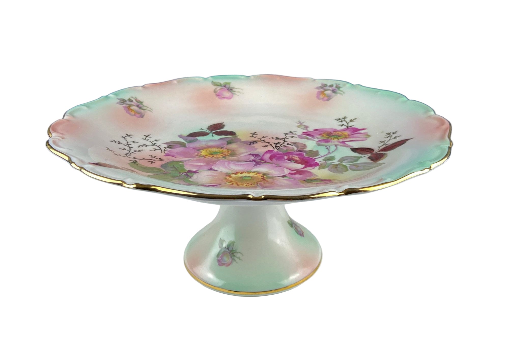 Footed Cake Stand. Vintage Hand Painted Porcelain by Schumann Arzberg Germany. Tea Rose Motif.