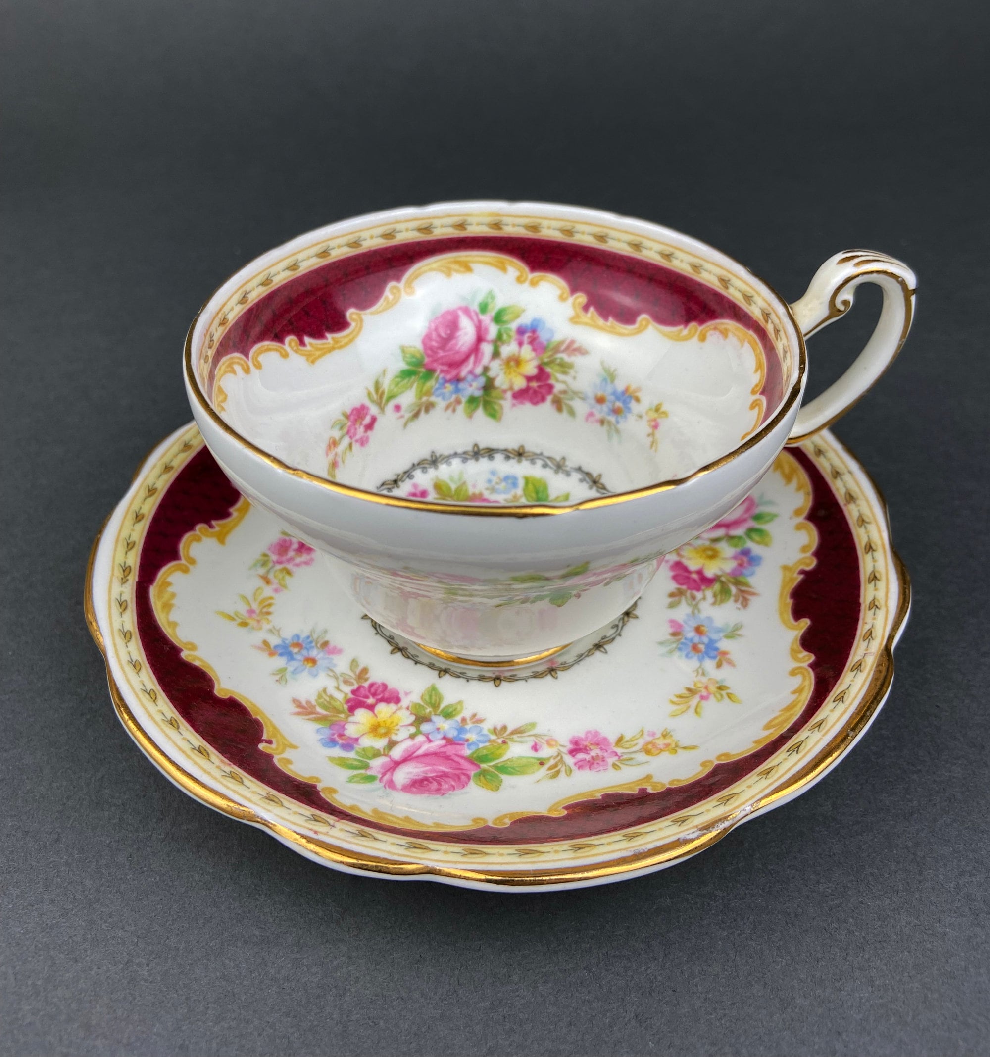 Vintage Tuscan Naples Tea Cup and Saucer. Fine English Bone China. Made in England. Good condition. No chips, no cracks, no crazing, and no gold loss. Marked by manufacturer.
