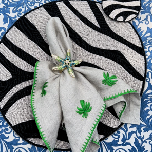• A true tablescape showstopper featuring a bold, graphic zebra stripe design
